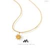 Collar de acero de titanio con colgante de sol pequeño y sencillo de moda con cadena de clavícula de lujo ligera y resistente a la decoloración de oro de 18 quilates para mujer
