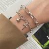 Pulsera de oso transfronteriza de material metálico, diseño coreano, colgante de cruz de viento frío, pulsera doble con punto
