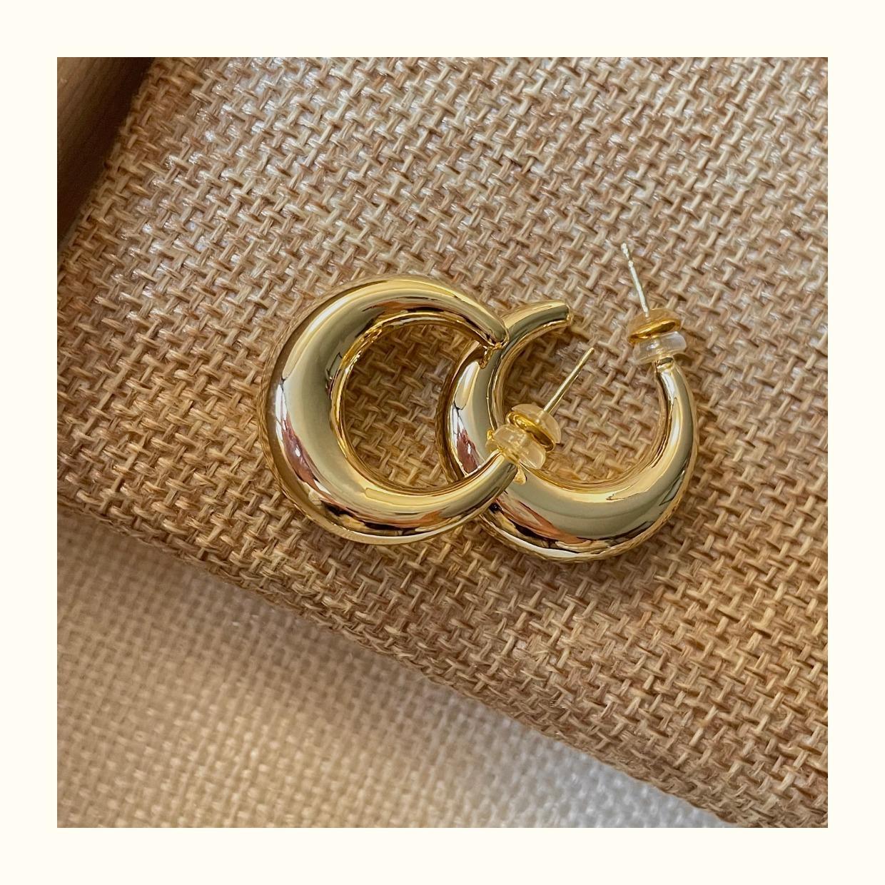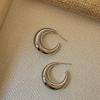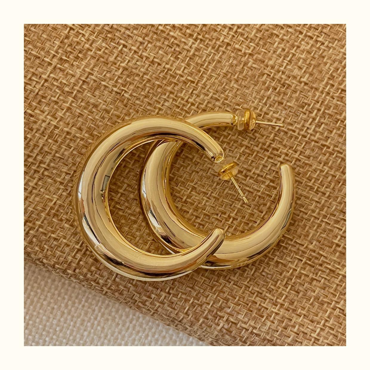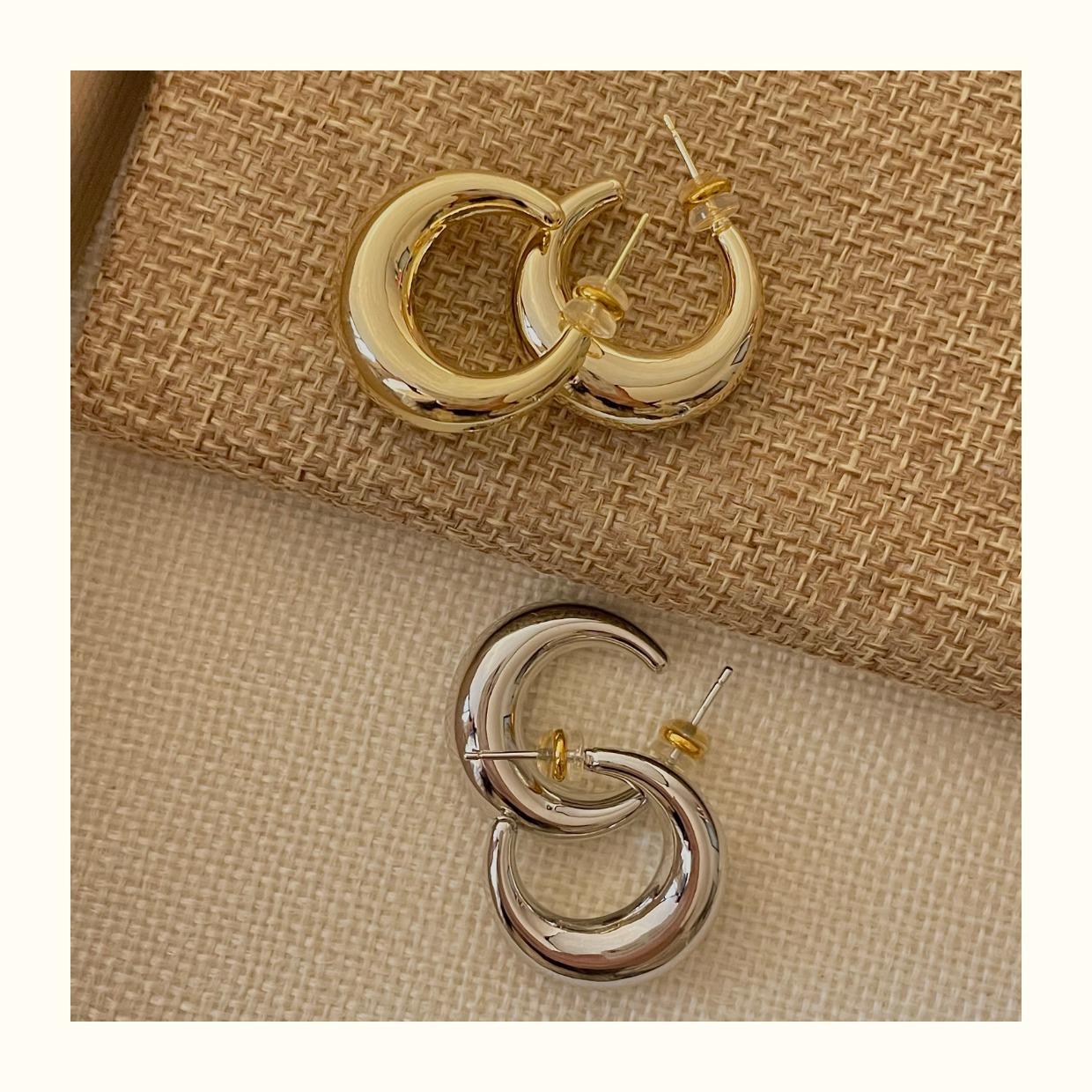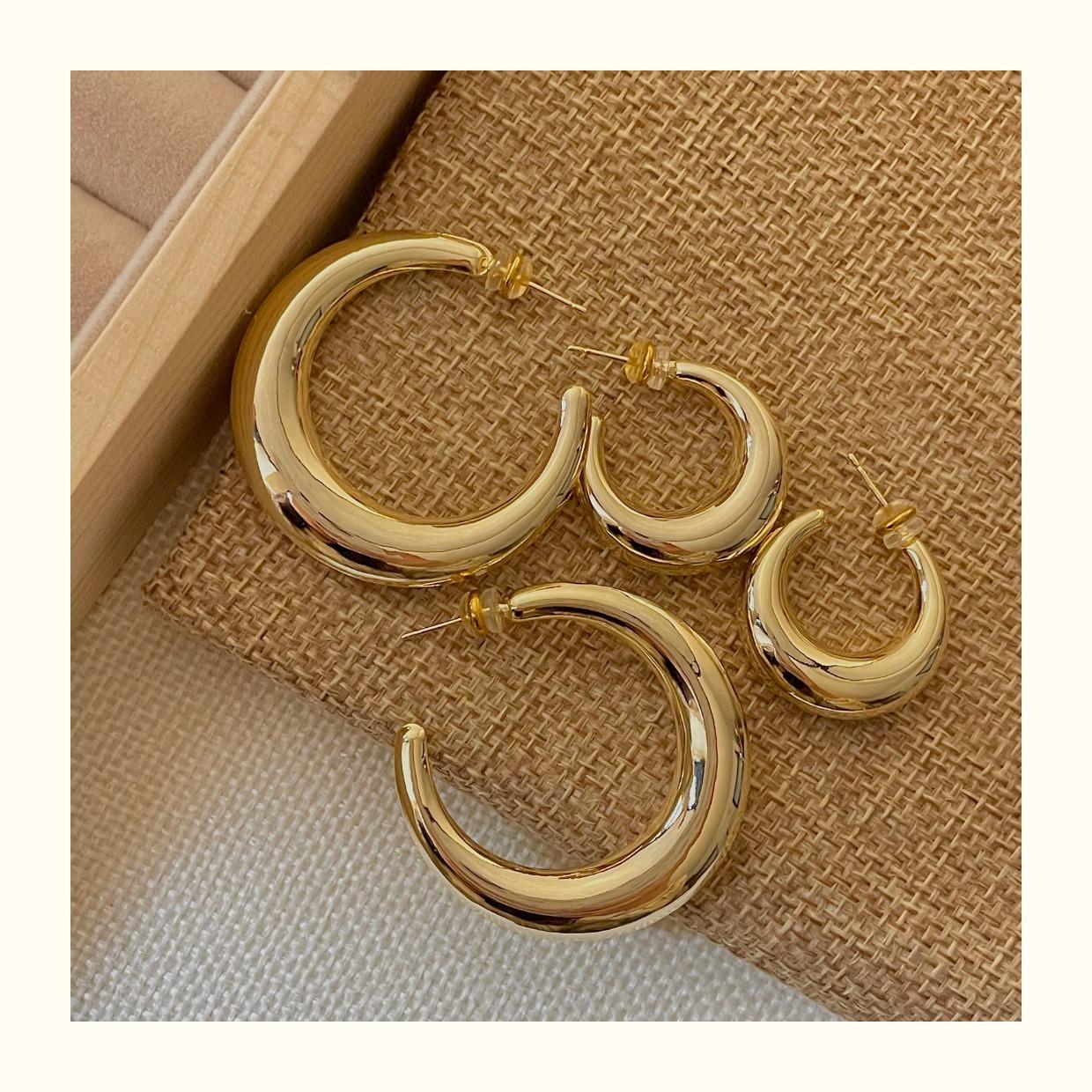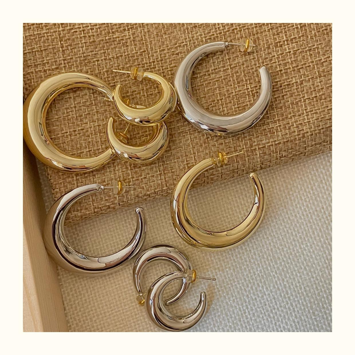 Arete de Aro Metálico Liso Semirredondo de Luna Creciente Simple Elegante Combinable Aretes Grandes Sensación Aretes de Pin Plateados Aretes de Tuerca para Mujer Modernos