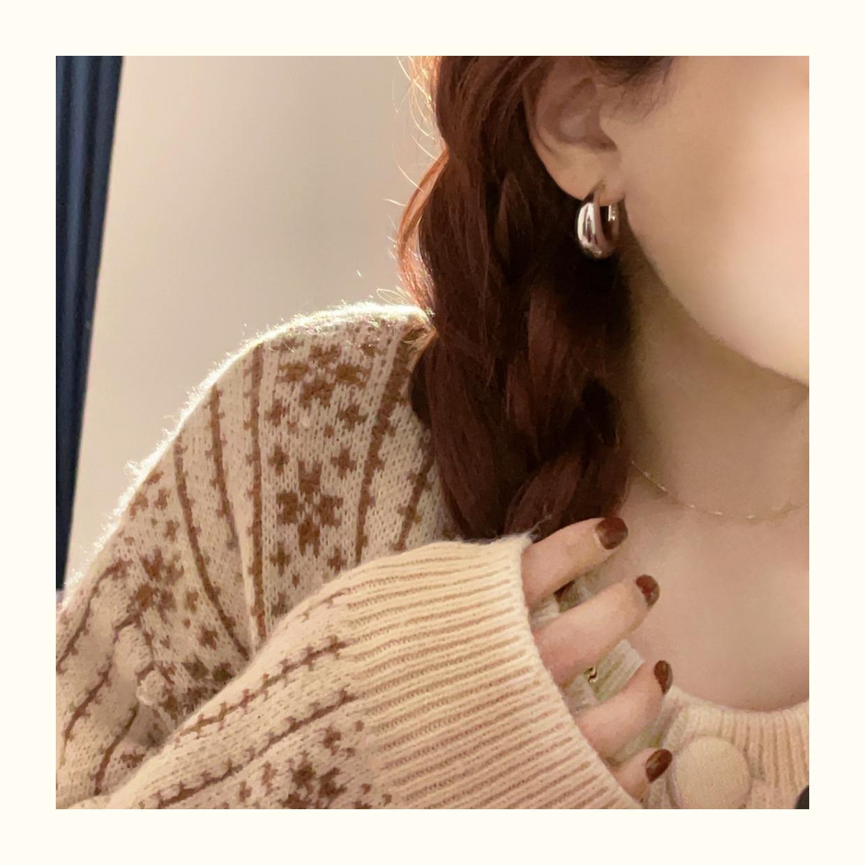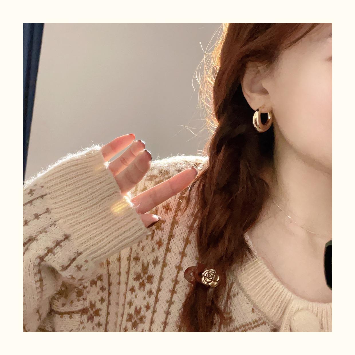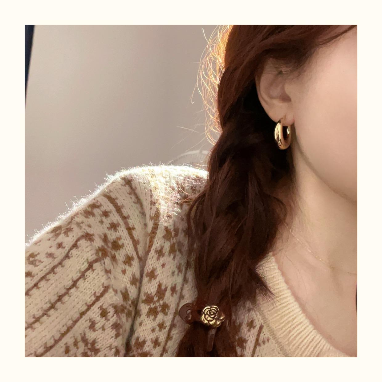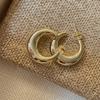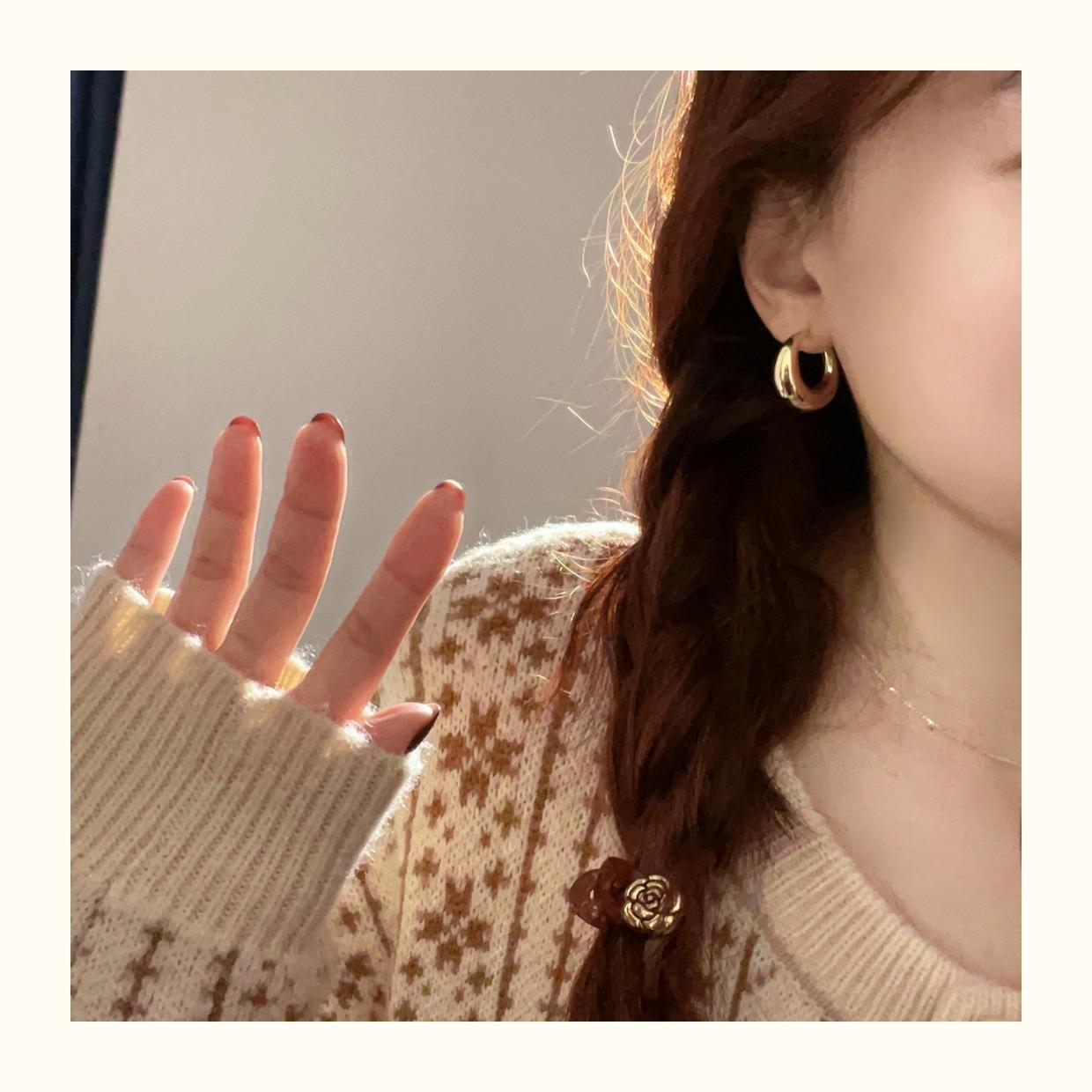 Arete de Aro Metálico Liso Semirredondo de Luna Creciente Simple Elegante Combinable Aretes Grandes Sensación Aretes de Pin Plateados Aretes de Tuerca para Mujer Modernos