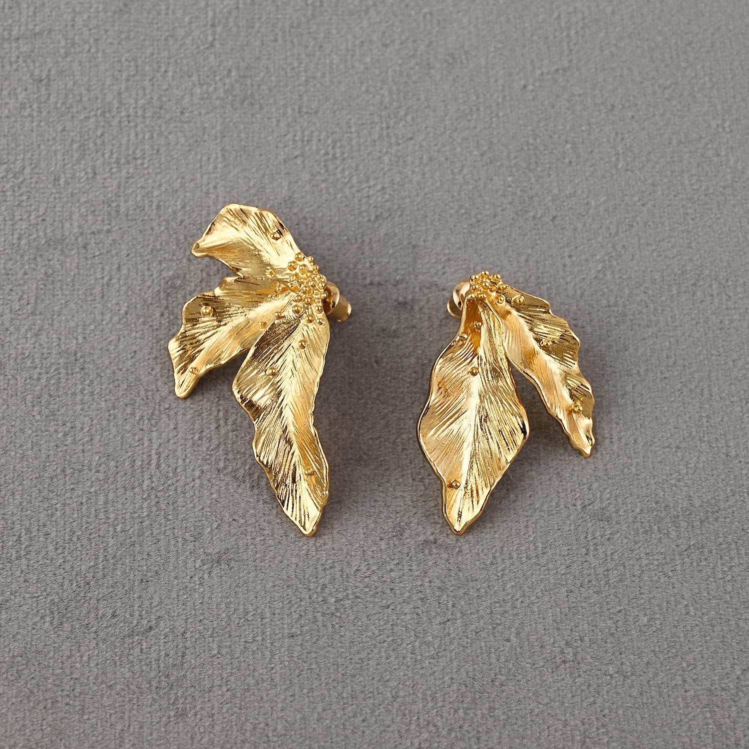 Pendientes de plata 925 con forma de hoja dorada y aguja, estilo europeo y americano, sencillos y elegantes, para mujer, venta al por mayor