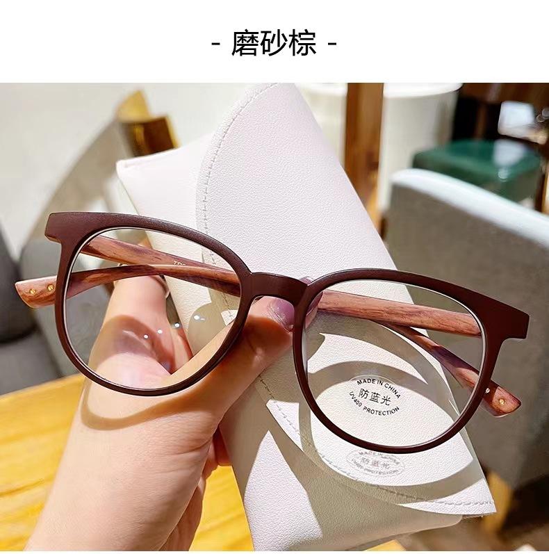 2022 nuevos lentes TR90 de luz anti-azul estilo retro coreano con patilla de grano de madera, caja, se pueden graduar, armazón para lentes sin graduación