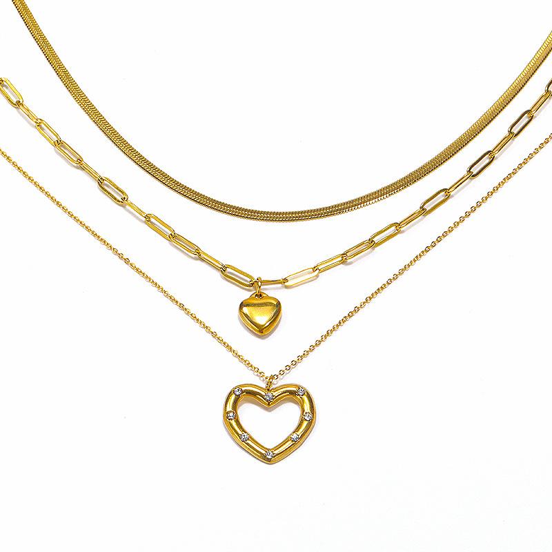 Collar desmontable con cadena de hueso de serpiente de tres capas apiladas de hip hop transfronterizo europeo y americano, joyería femenina de acero de titanio chapada en oro de 18 quilates