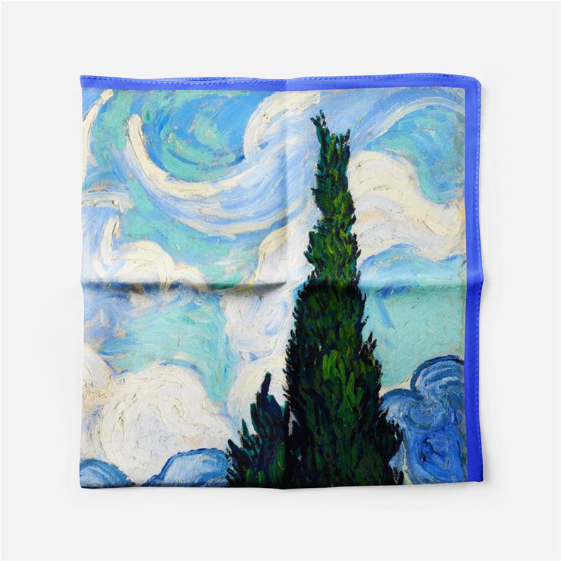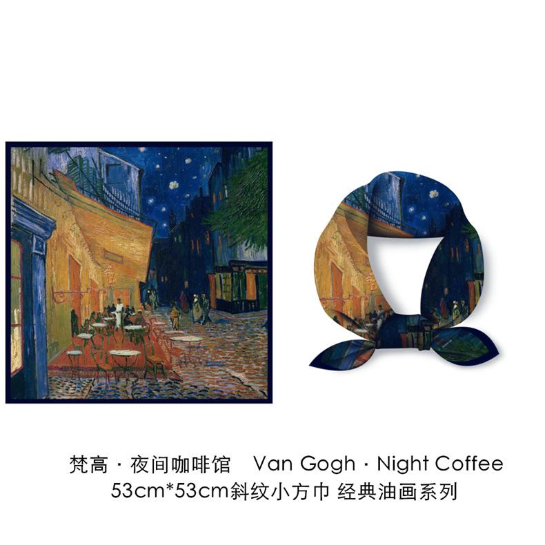 53 pequeñas bufandas cuadradas de seda, bufandas vintage con estampado de pintura al óleo, nuevas bufandas profesionales de sarga de seda, bufandas al por mayor