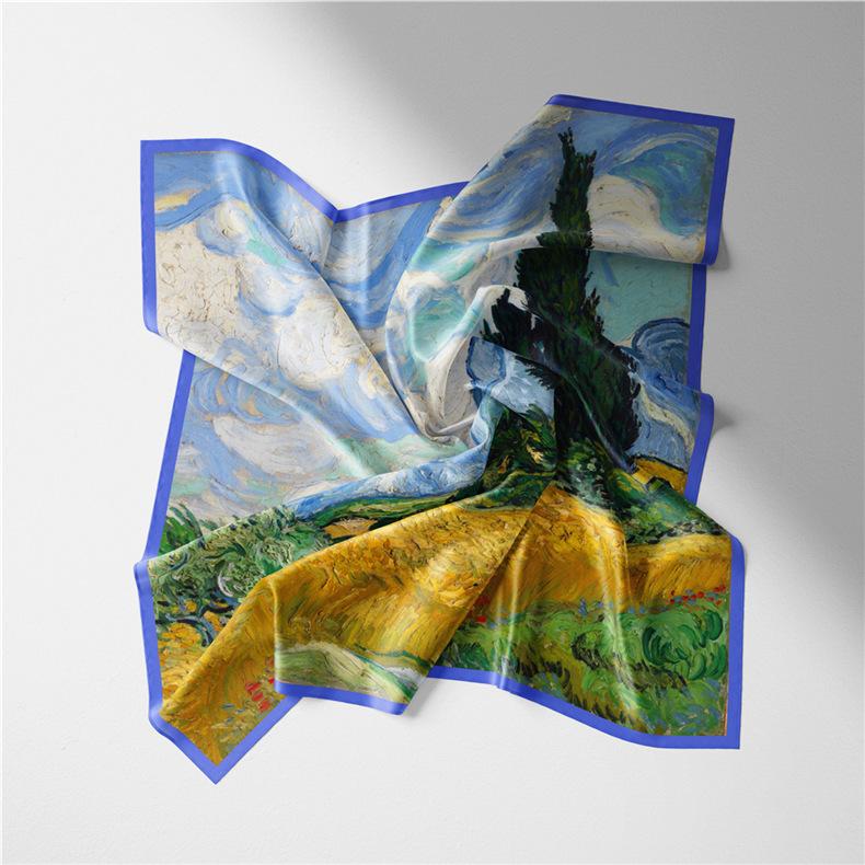 Compra 53 pequeñas bufandas cuadradas de seda, bufandas vintage con estampado de pintura al óleo, nuevas bufandas profesionales de sarga de seda, bufandas al por mayor al por mayor en Joom.pro