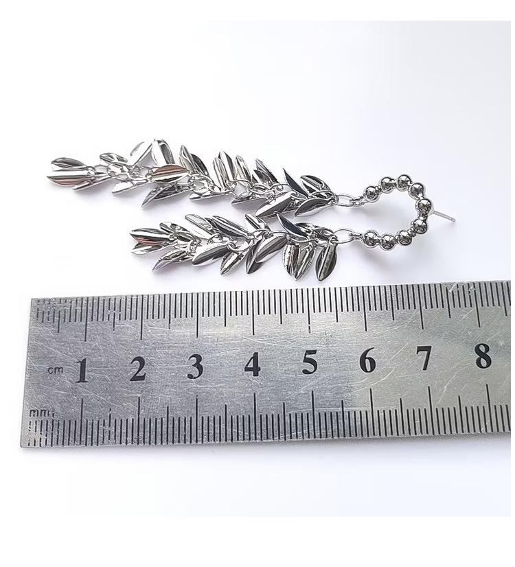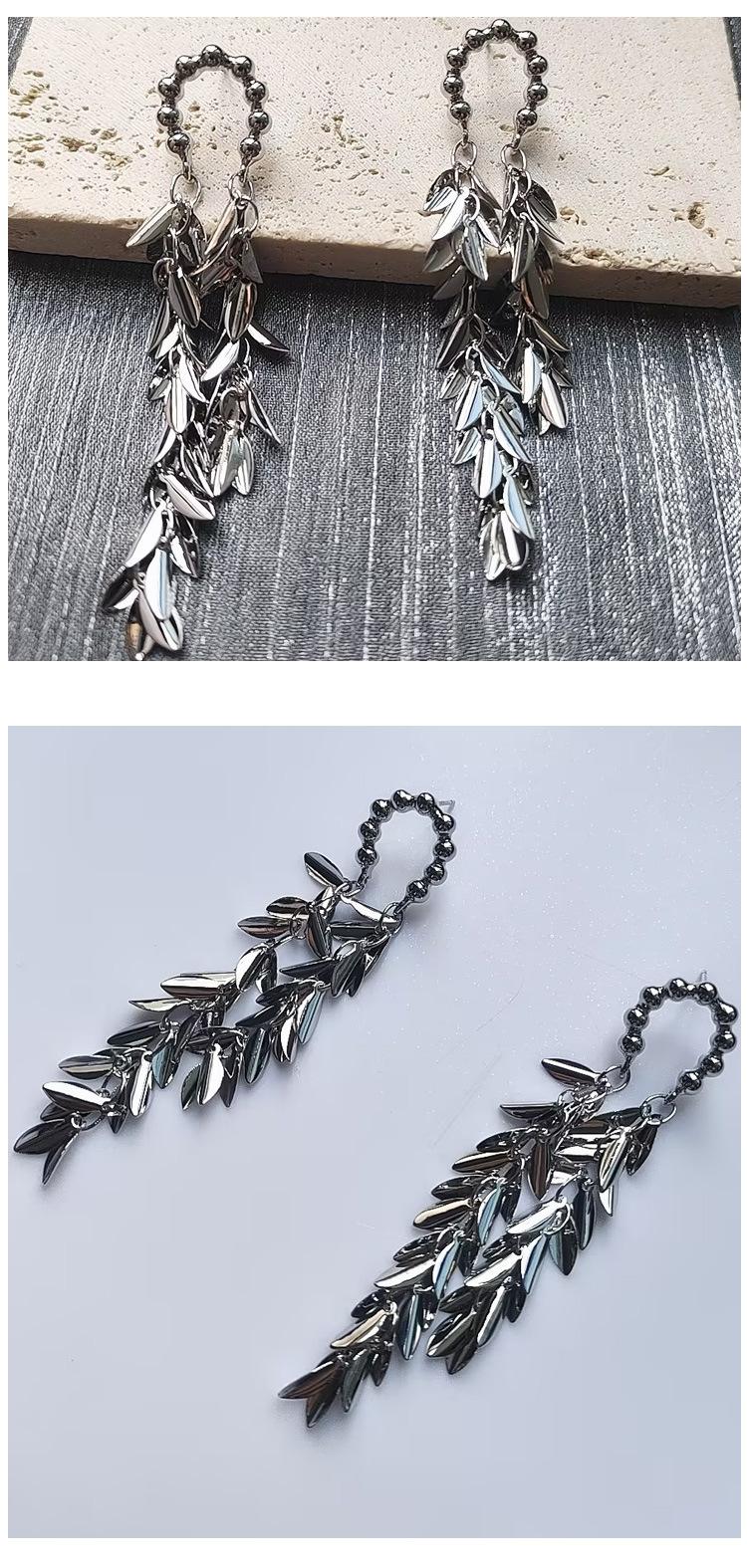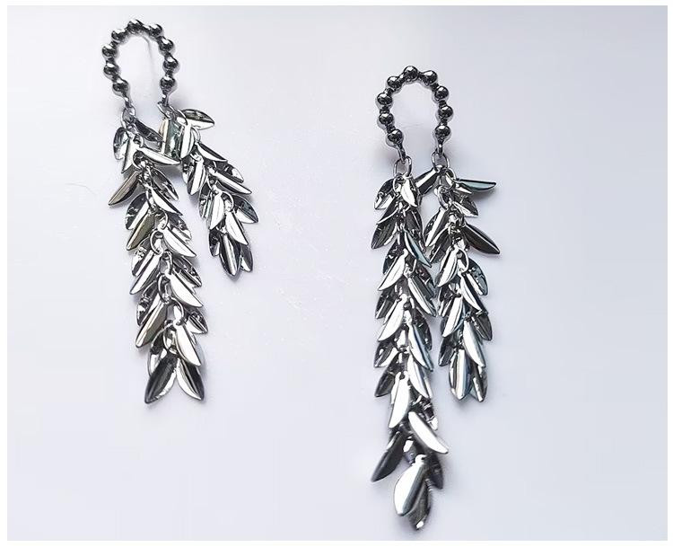 Pendientes largos con borlas y orejas de trigo para mujer, estilo europeo y americano, con personalidad exagerada, diseño de nicho, con hojas y lentejuelas, a la moda.