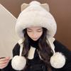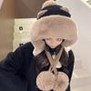 Gorro de zorro para mujer, moda de otoño e invierno, cálido gorro de conejo con protección para los oídos, gorro de peluche Lei Feng, bonito gorro de esquí para el frío para invierno