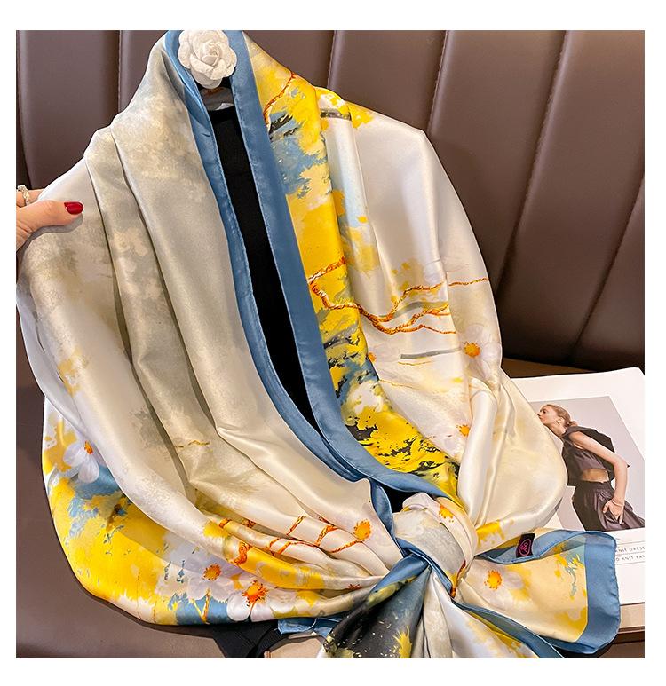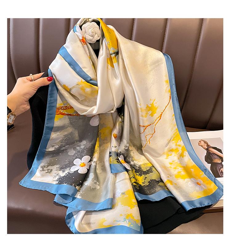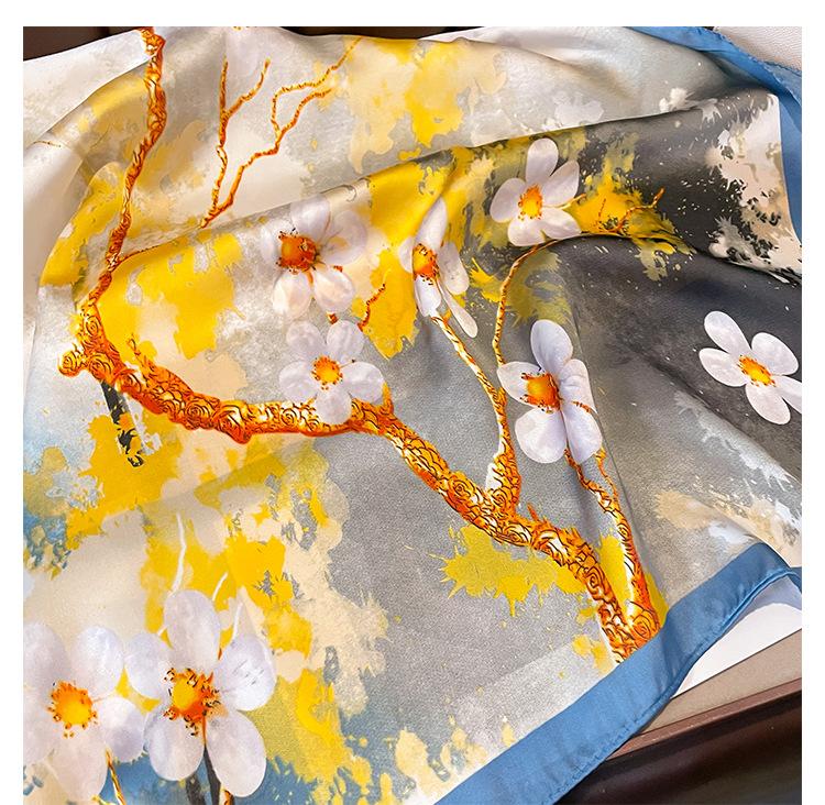 Bufanda de seda de Hangzhou para mujer, retro, para madres de mediana edad y mayores, primavera y otoño, bufanda versátil, chal, bufanda