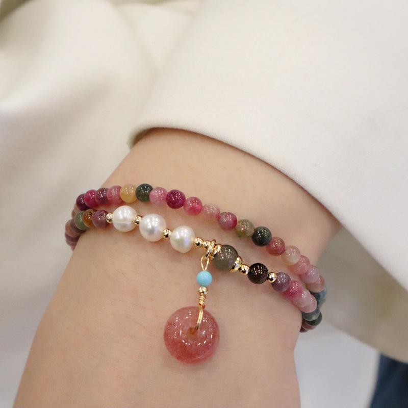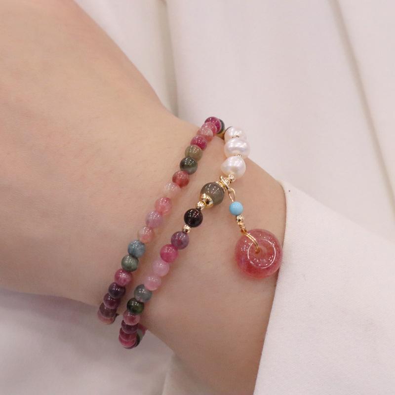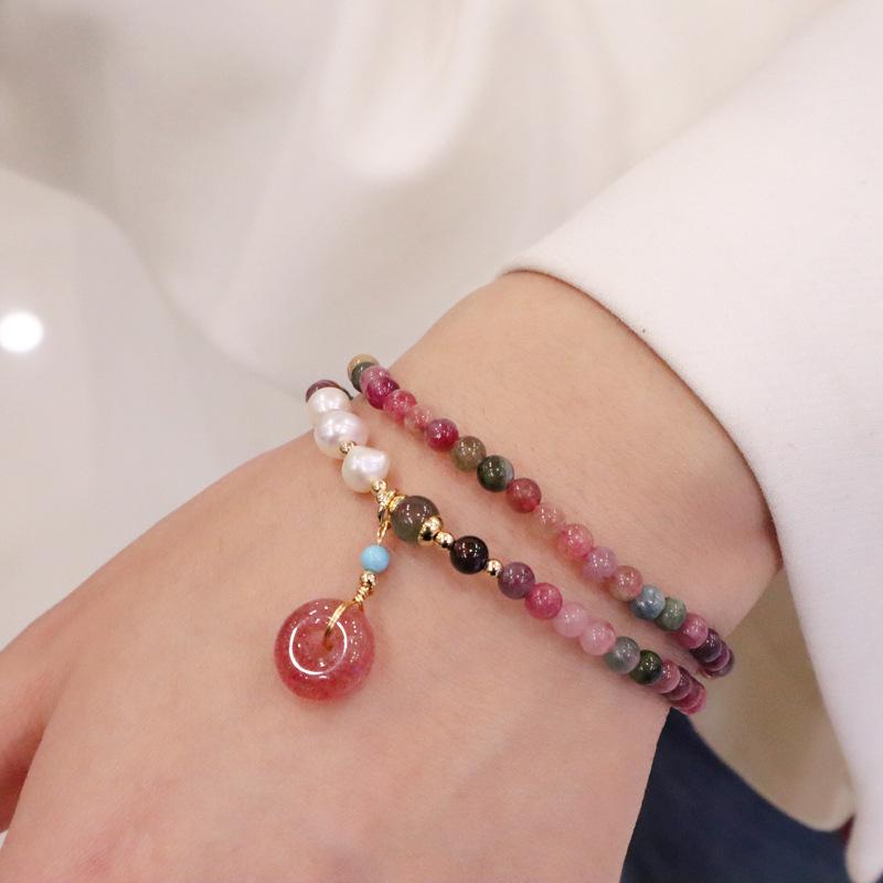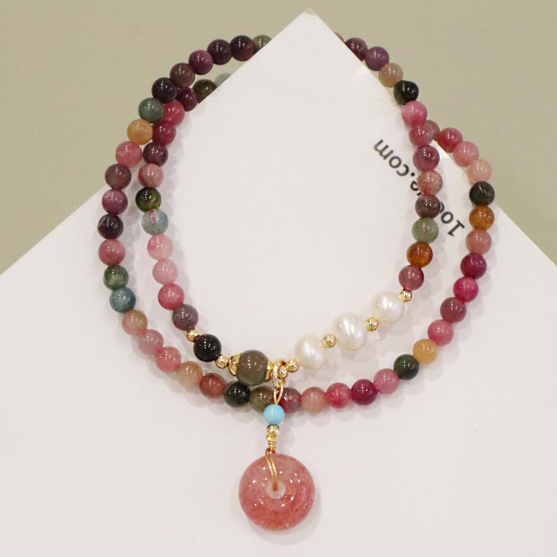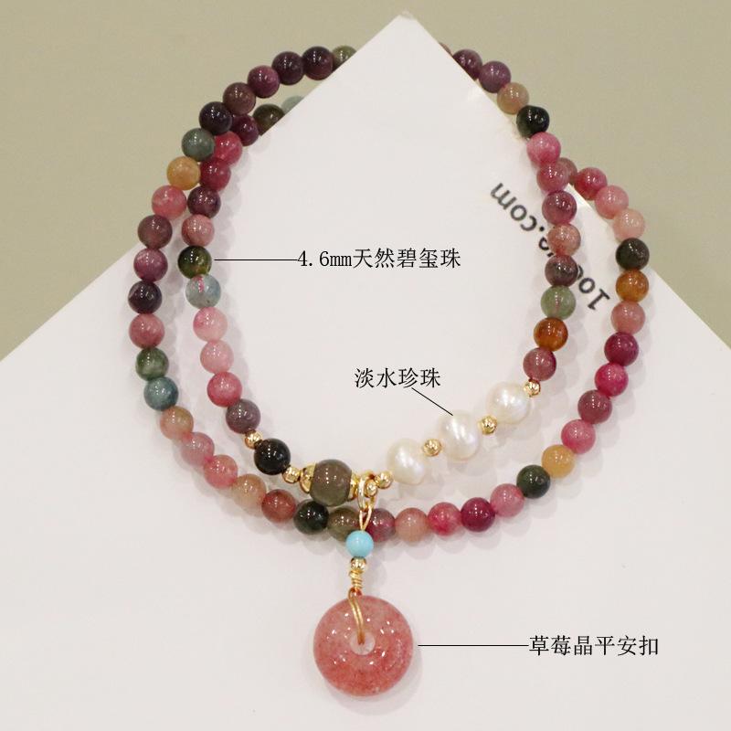Natural tourmaline double ring strawberry Crystal safety buckle bracelet