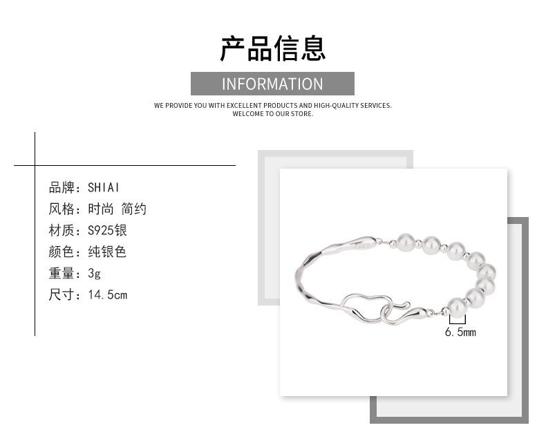 Pulsera de perlas naturales SHIAI, pulsera de plata esterlina AB, diseño de nicho simple, pulsera estilo ins, regalo