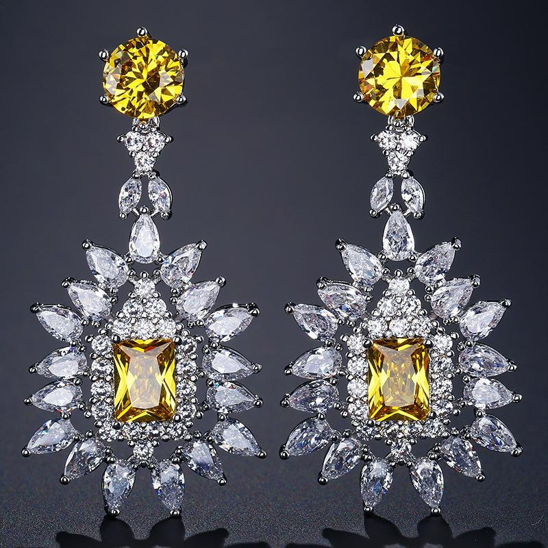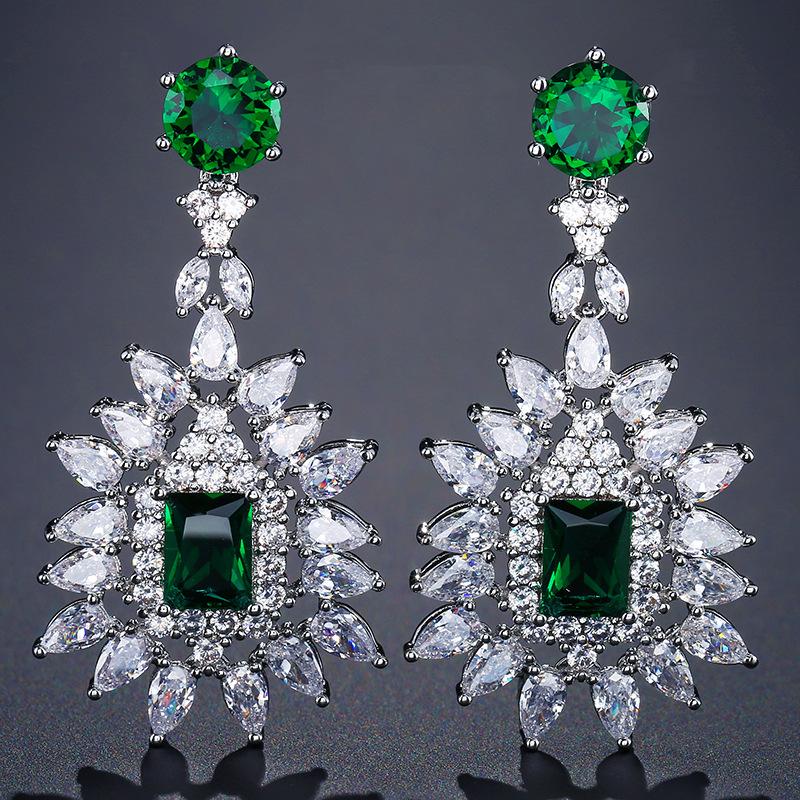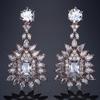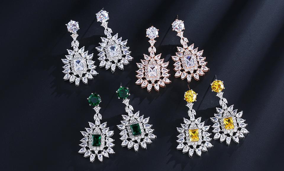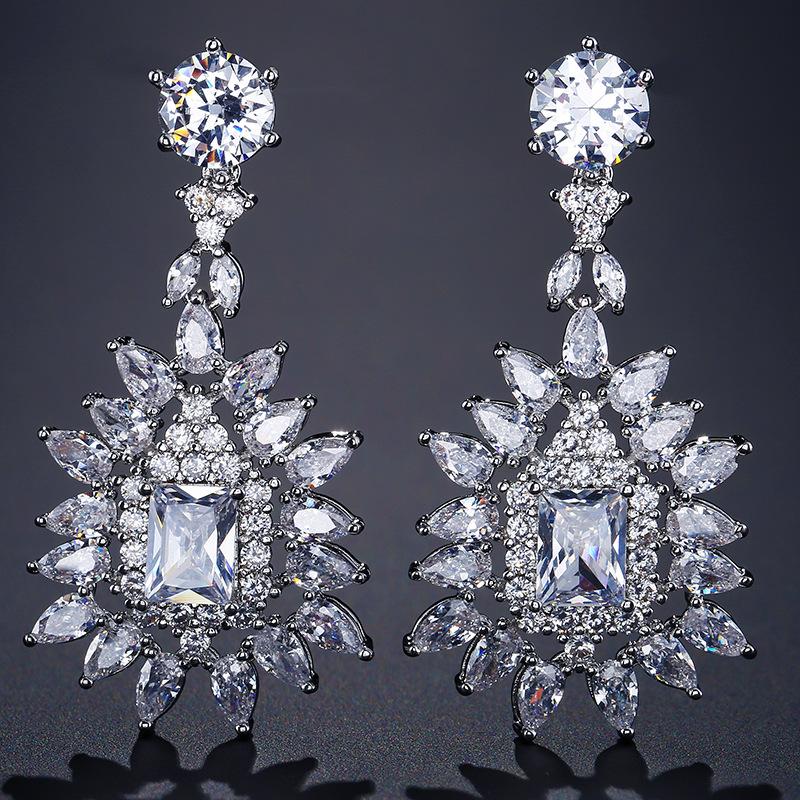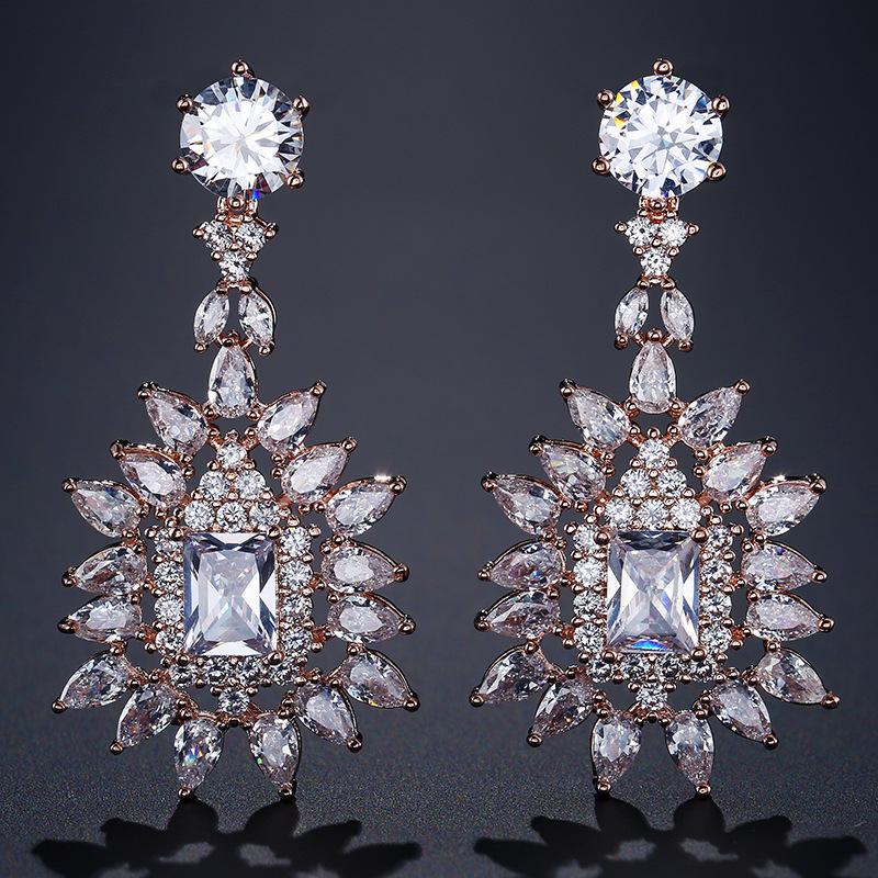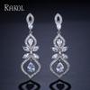 RAKOL - Pendientes largos elegantes de circonita con diseño de flores, elegantes, de lujo, estilo europeo y americano, para novia, únicos, creativos y exquisitos.