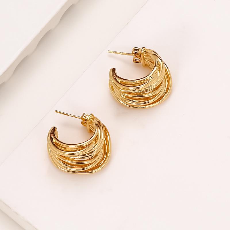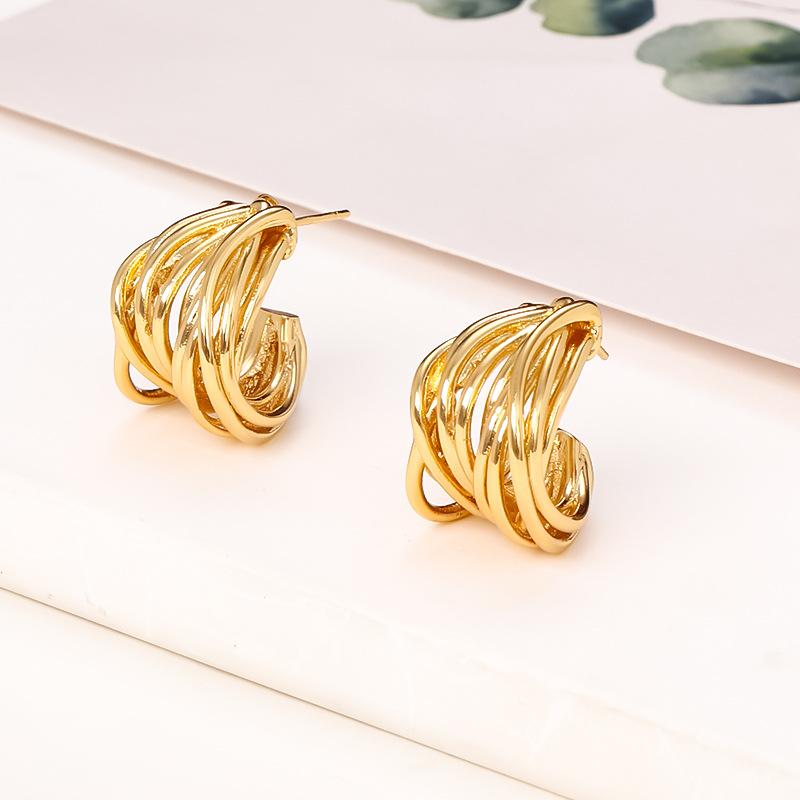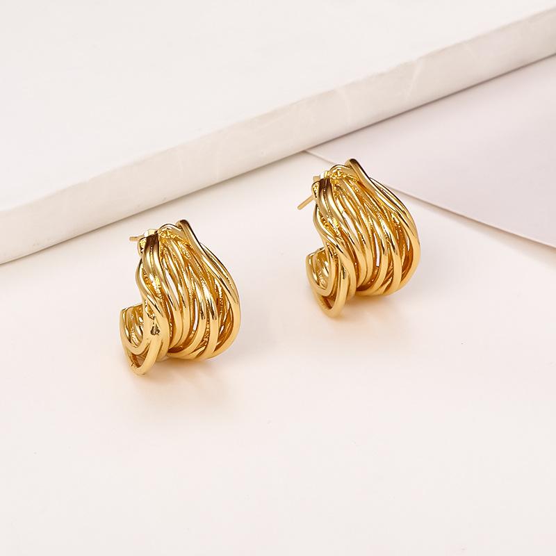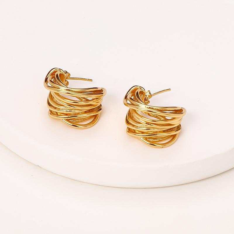 Compra Pendientes nuevos de comercio exterior enrollados en múltiples capas irregulares en forma de C chapados en oro cobre diseño de personalidad creativa temperamento pendientes para mujer al por mayor en Joom.pro