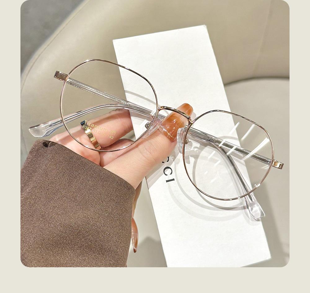 Gafas de miopía de oro rosa retro para mujer, estilo coreano, artefacto de belleza simple 6387, montura de gafas de titanio puro simple, montura de gafas Danyang, venta al por mayor