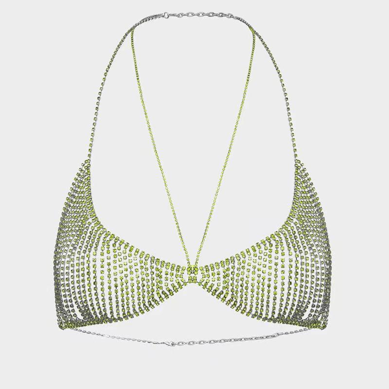 Modelo de moda europea y americana, sexy, con diamantes de imitación, cadena corporal, accesorios para el pecho, ropa interior, exhibición de ropa interior, cadena corporal transfronteriza