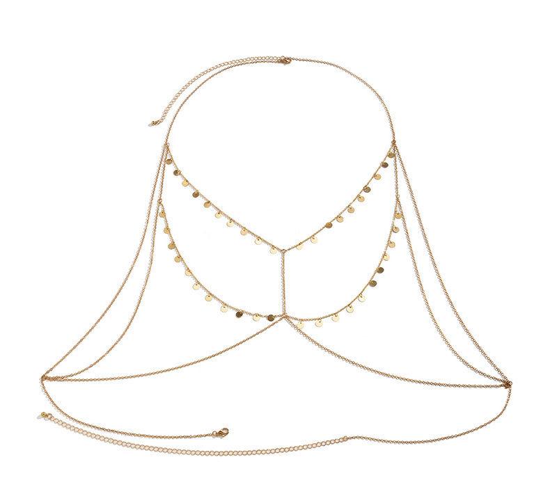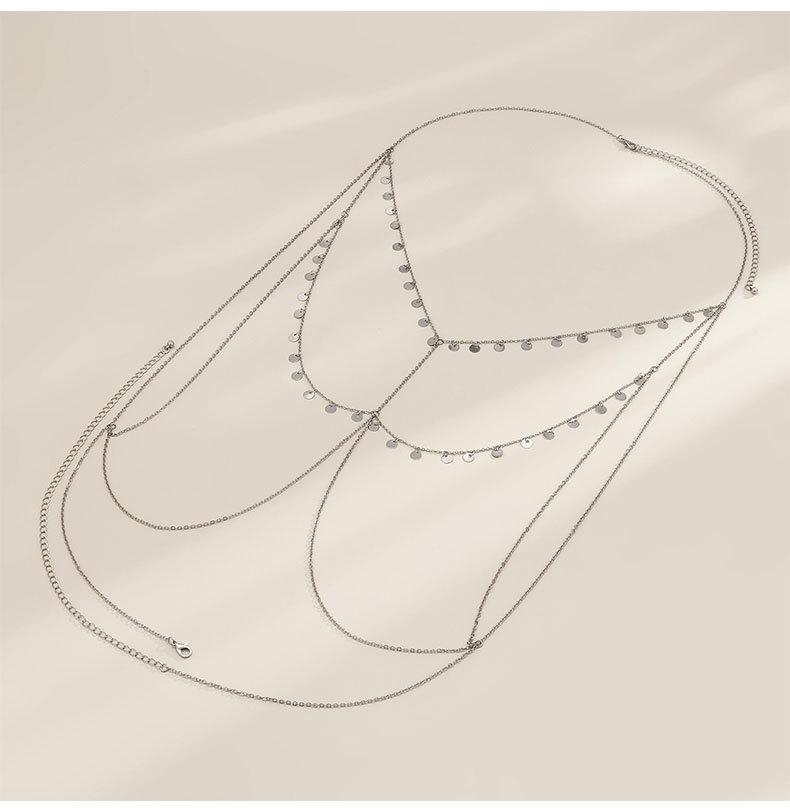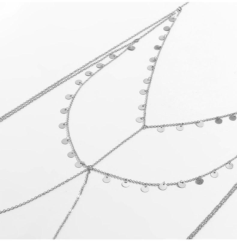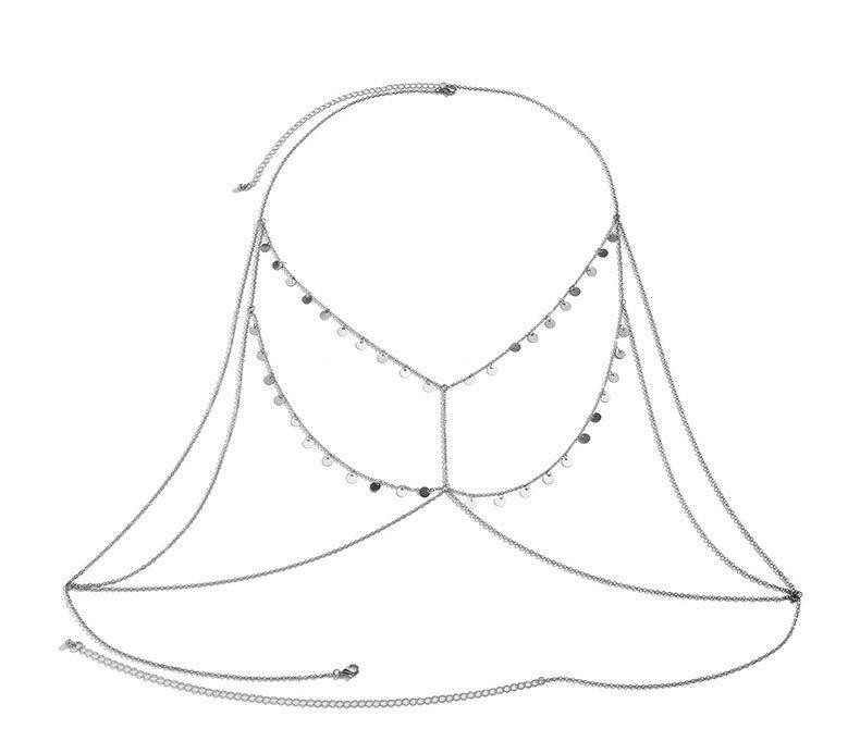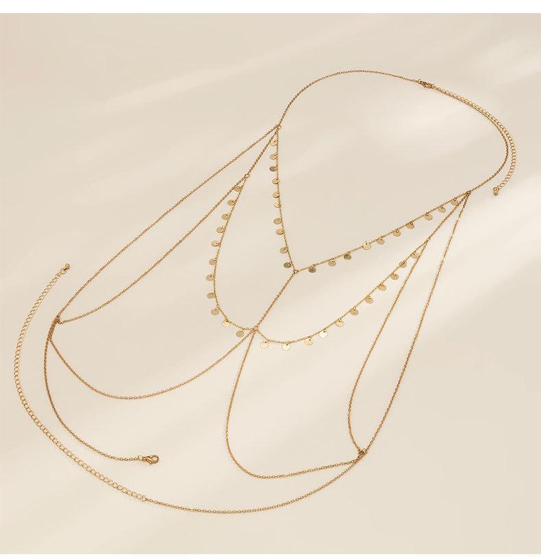 Cadena de pecho de bikini con borlas de lentejuelas europeas y americanas, joyería de verano, superventas, estilo club nocturno, cadena corporal sexy para mujer