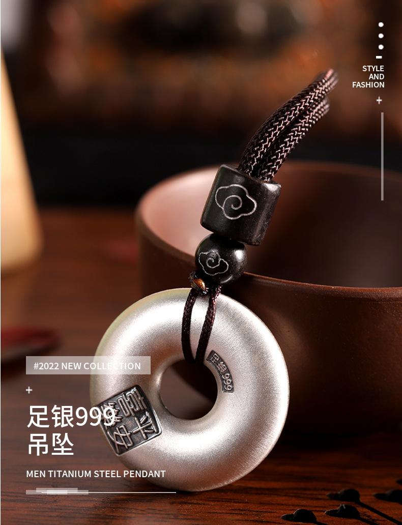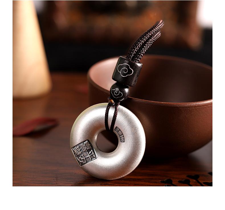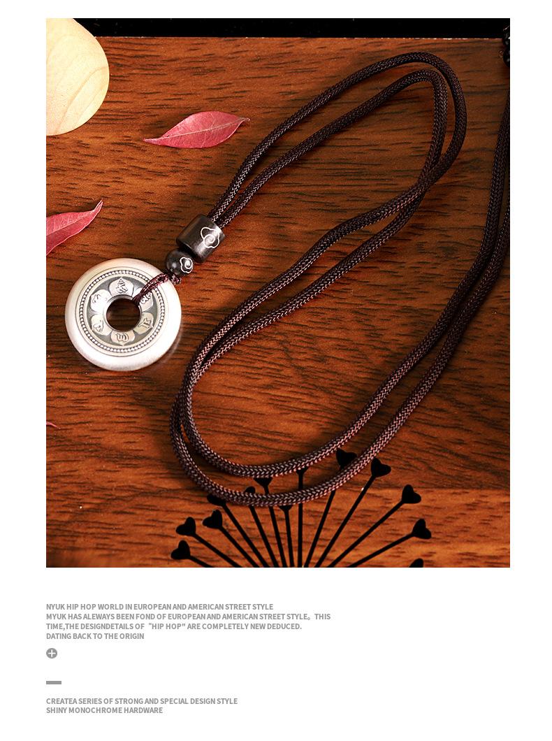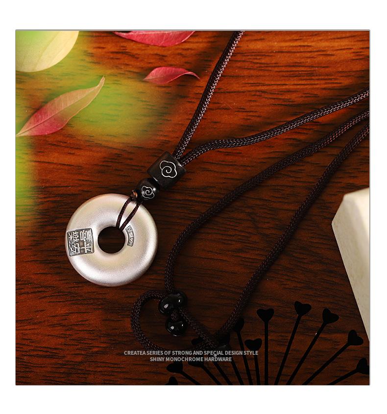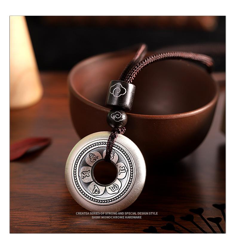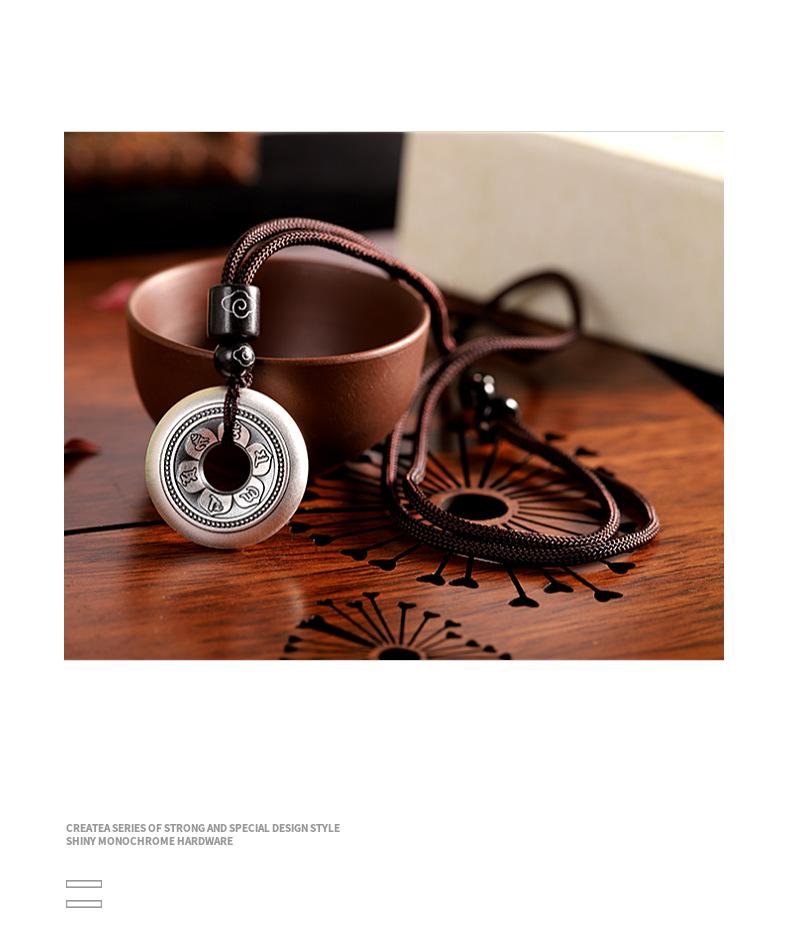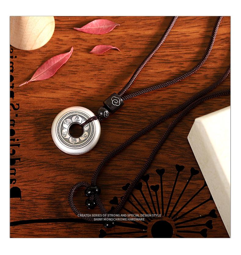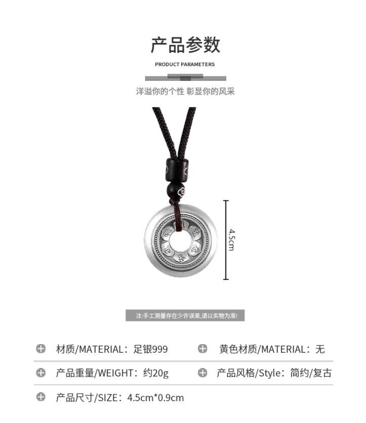 Collar con colgante de plata de ley 999 con seis palabras de estilo sencillo y hebilla de la suerte para hombres y mujeres, producto nuevo transfronterizo.