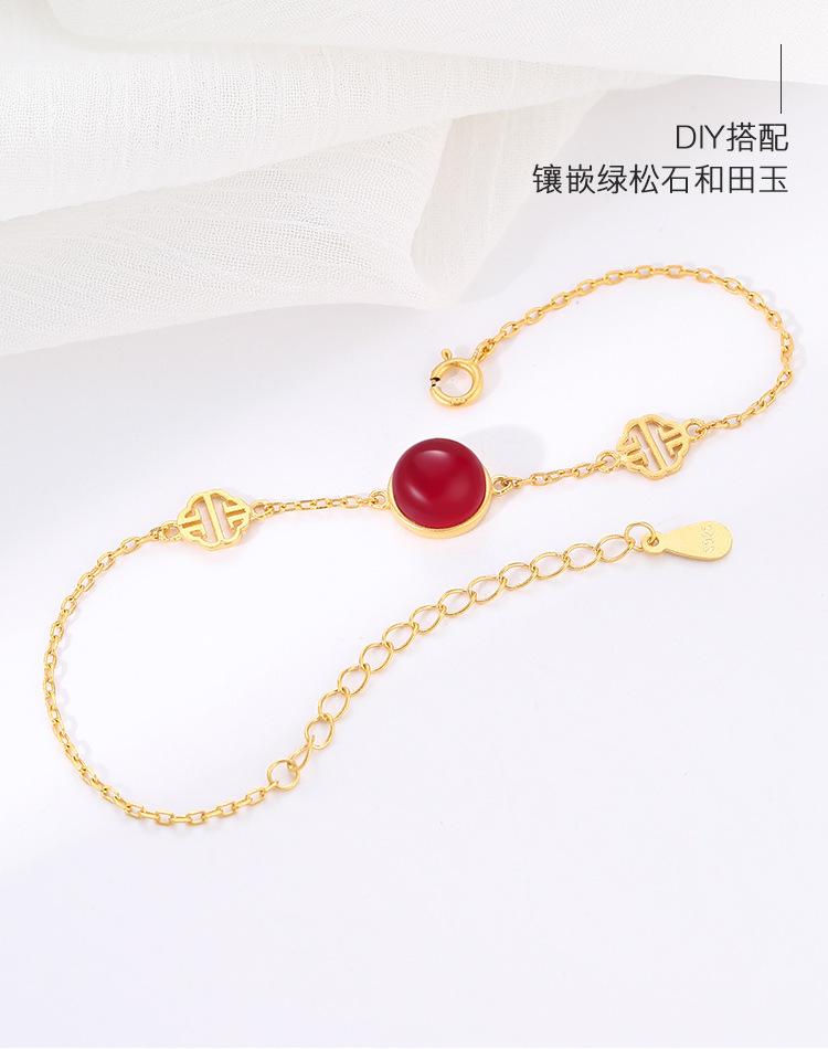 Compra Pulsera de Plata Esterlina s925 Oro Kantogu Pulsera Simple de Estilo Chino Pulsera de Plata con Jaspe y Pulsera de Jade Hetian al por mayor en Joom.pro