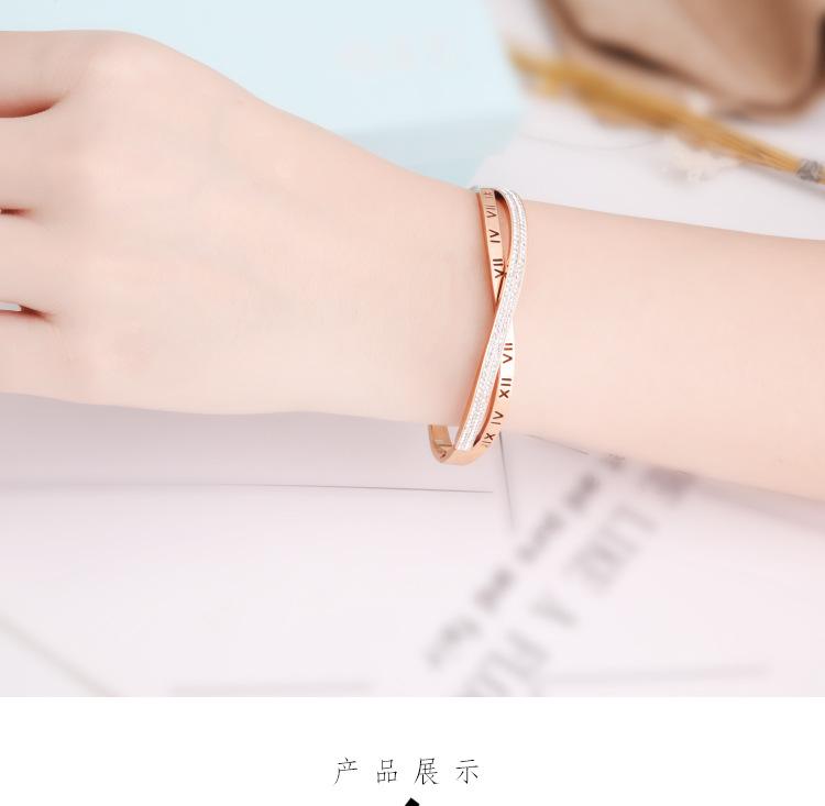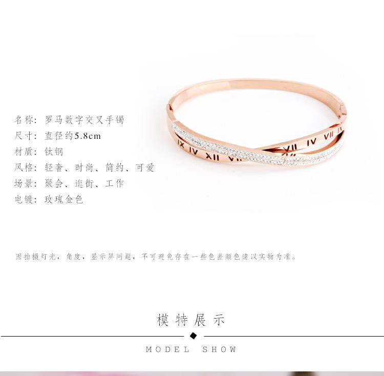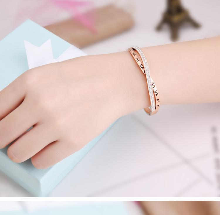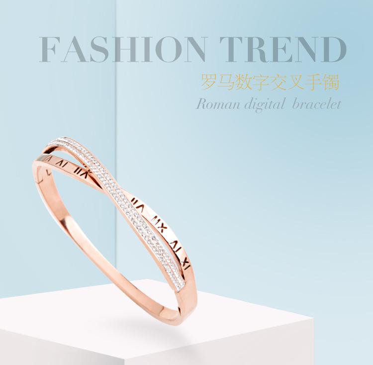 Pulsera de cruz digital romana con diamante Moda europea y americana pulsera de acero de titanio exagerada geométrica nueva pulsera con hebilla oculta en stock