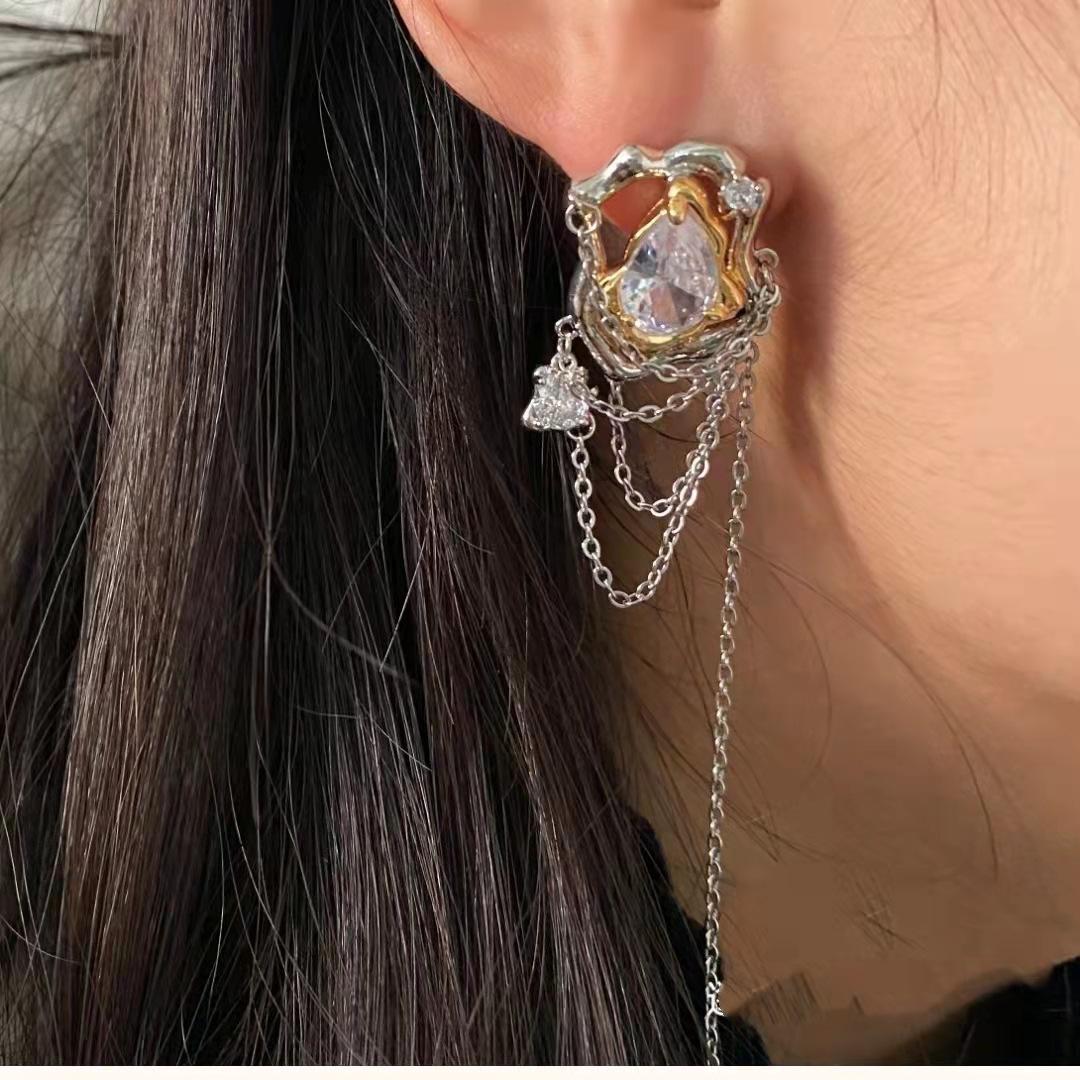 Compra Pendientes de aguja de plata estilo francés con circonitas grandes y súper hadas, estilo frío, con borlas, cadena geométrica para mujer, adelgazamiento facial, moda al por mayor en Joom.pro