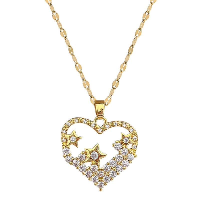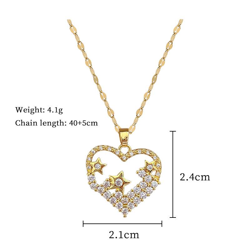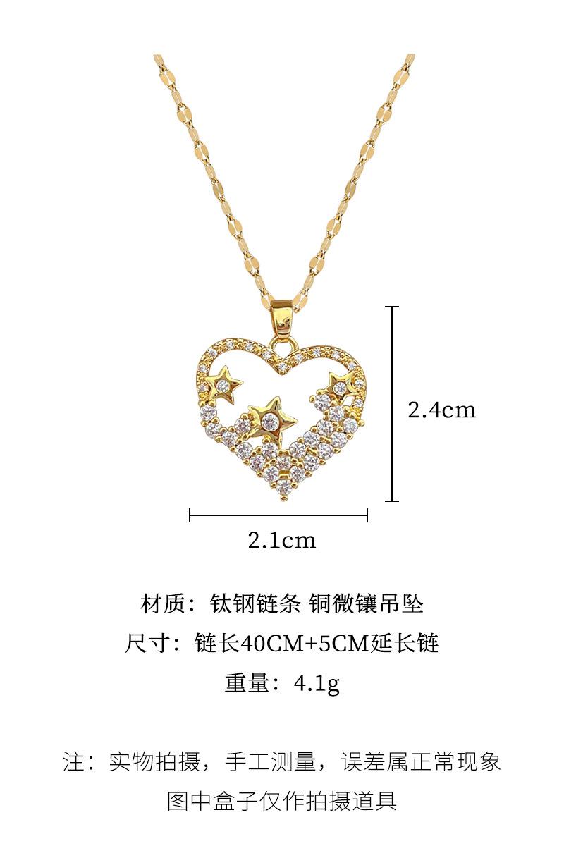 [Acero de titanio] Collar de diamantes de lujo con temperamento de estrella de cinco puntas y amor, cadena de clavícula femenina a juego, cadena de acero de titanio