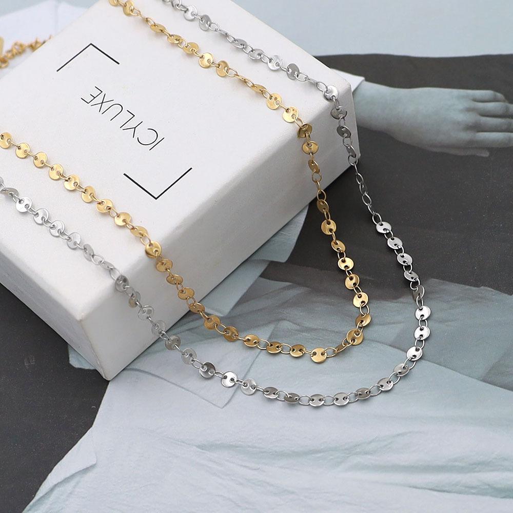 Collar de cadena de disco de acero de titanio para mujer, cadena de cuello de oro de 18 quilates, simple, de moda transfronteriza, que no se desvanece, versátil y de alta gama.