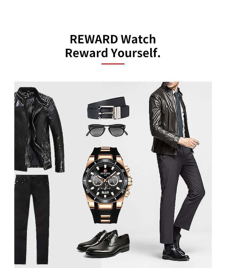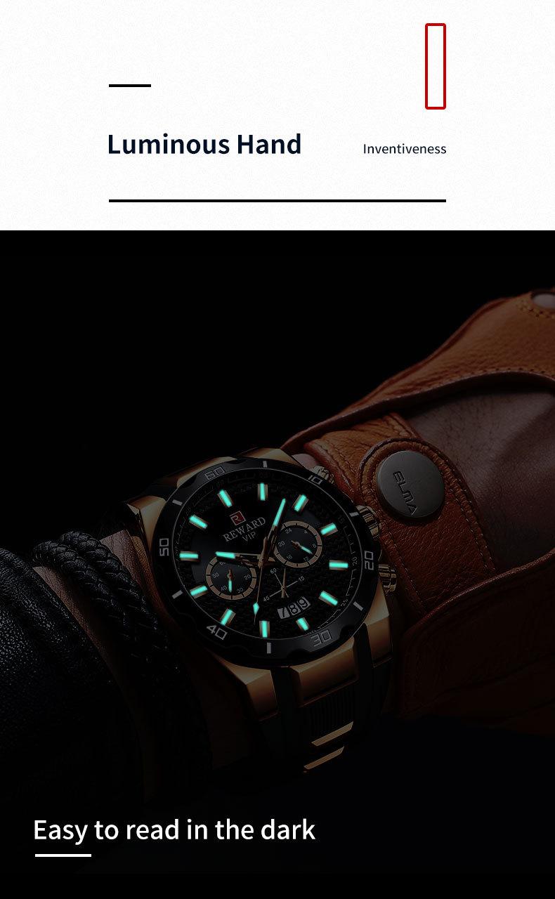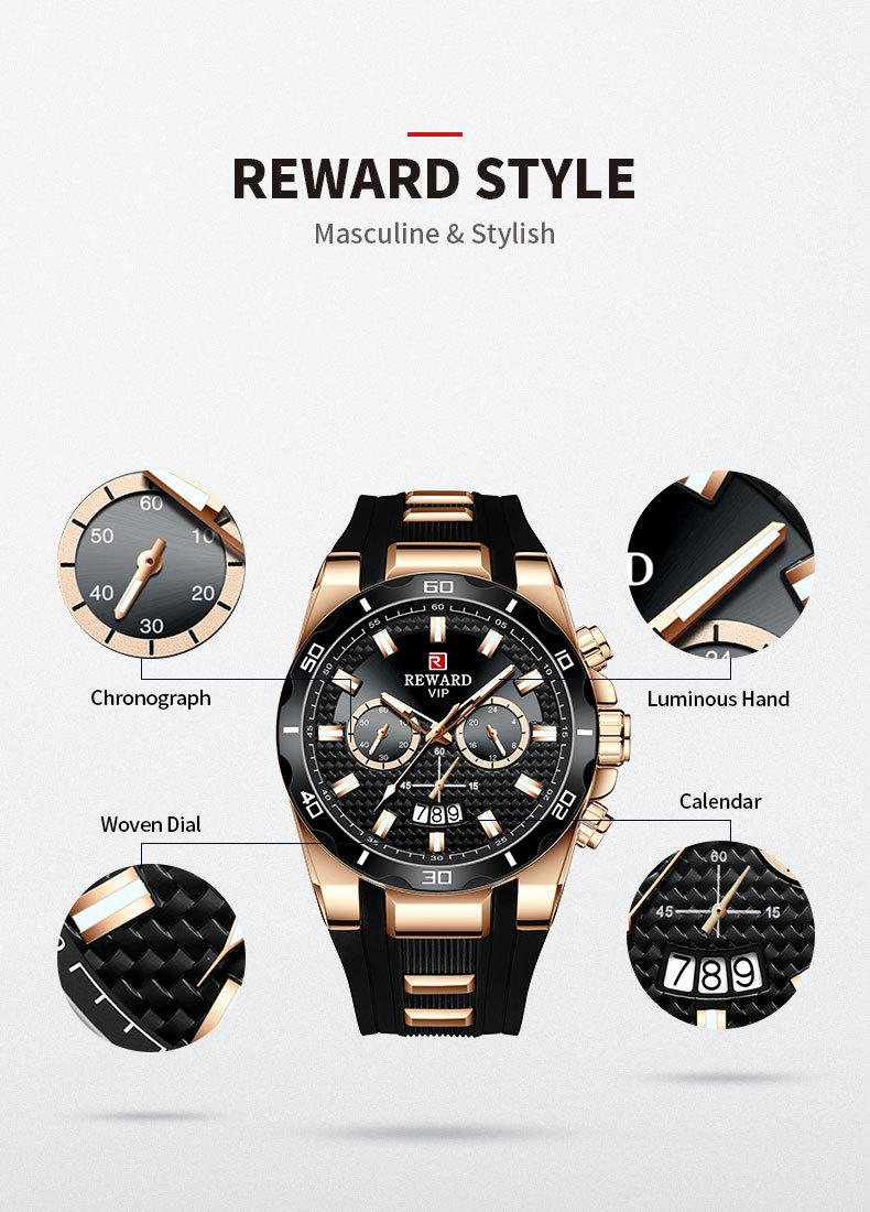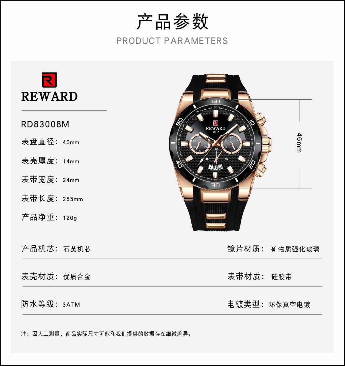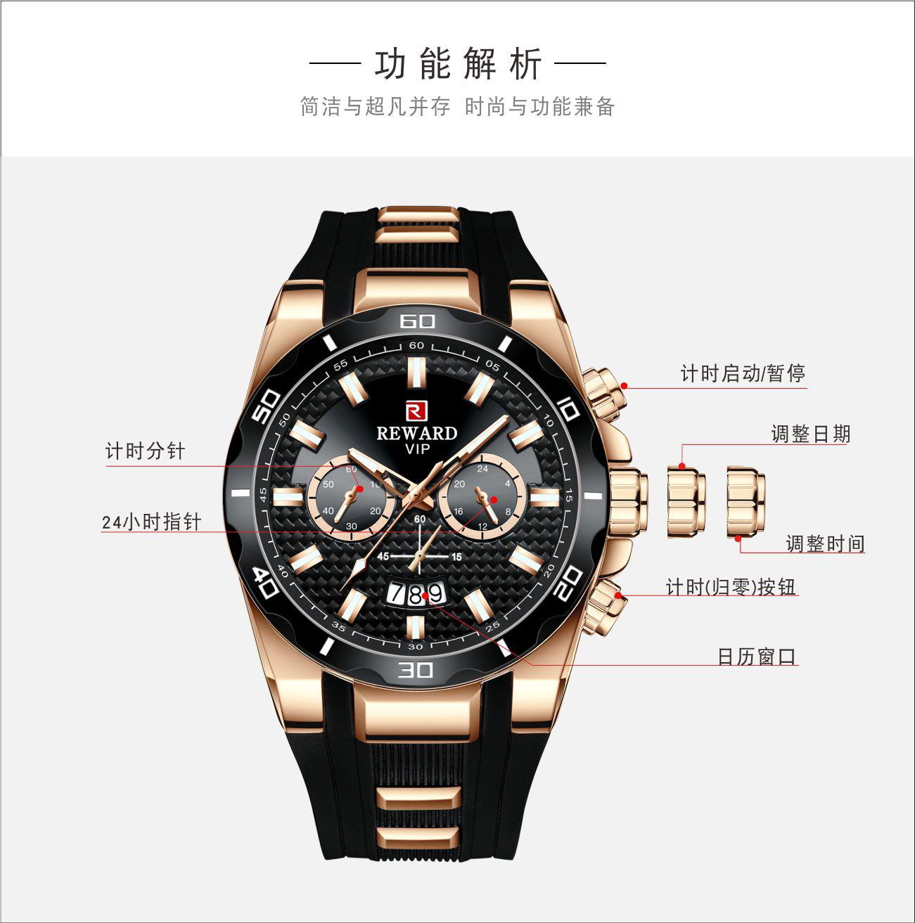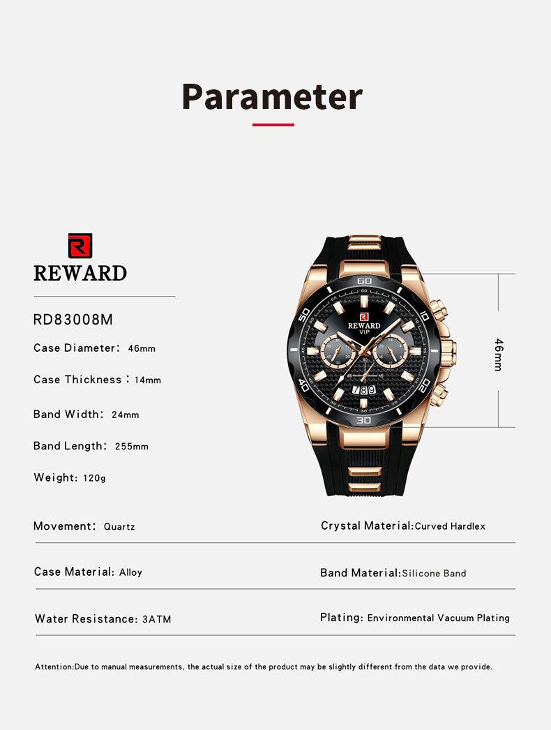 REWARD83008 Reloj para hombre, reloj calendario, reloj de cuarzo, reloj de cinta, reloj de seis agujas, reloj de negocios para hombre