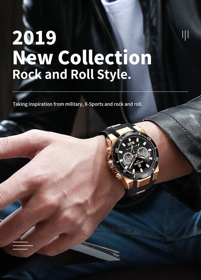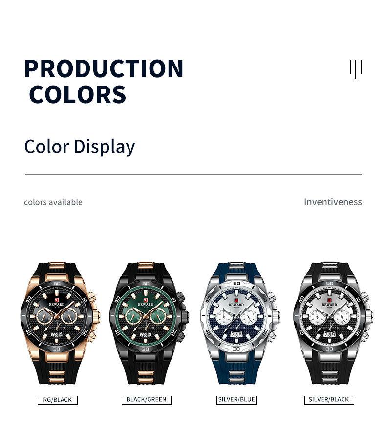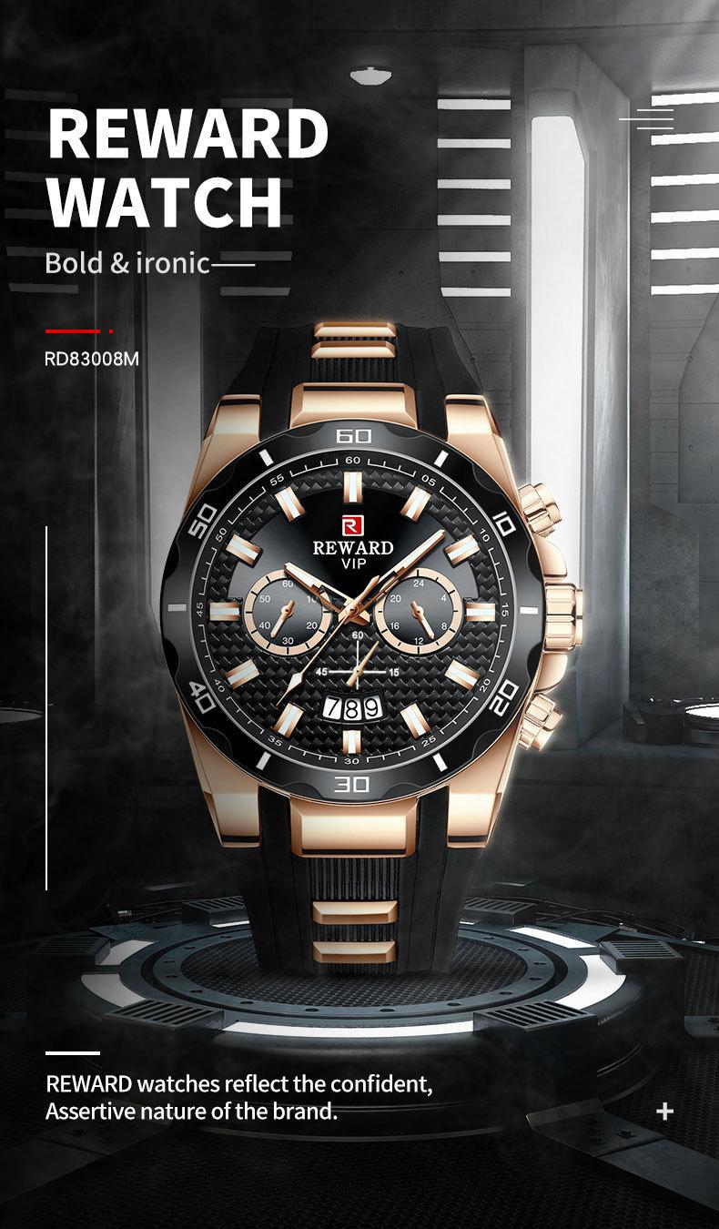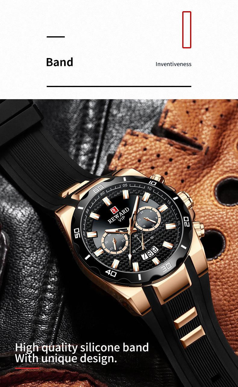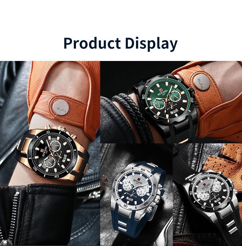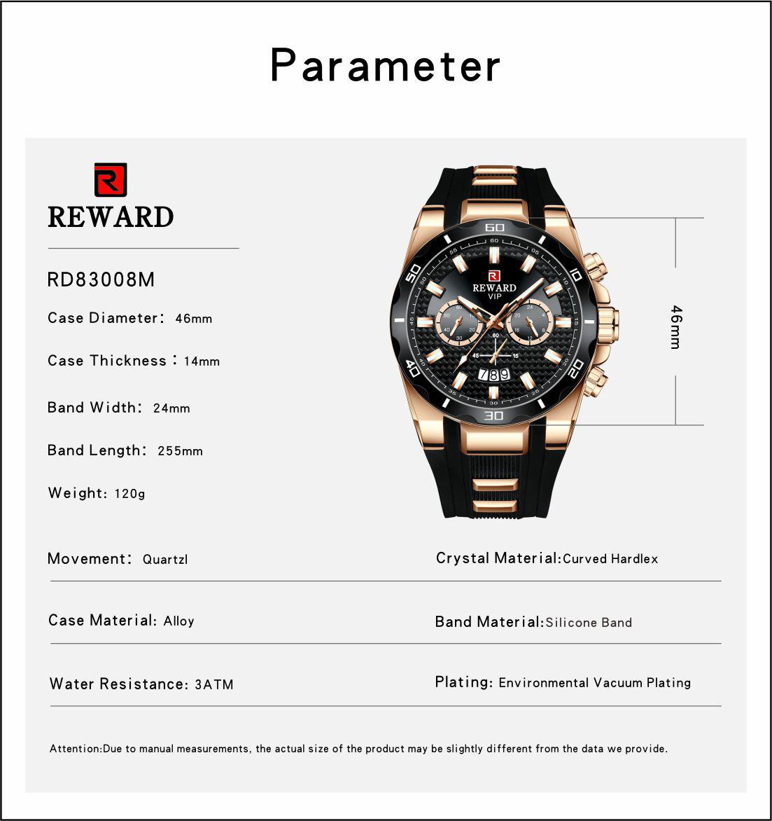 REWARD83008 Reloj para hombre, reloj calendario, reloj de cuarzo, reloj de cinta, reloj de seis agujas, reloj de negocios para hombre