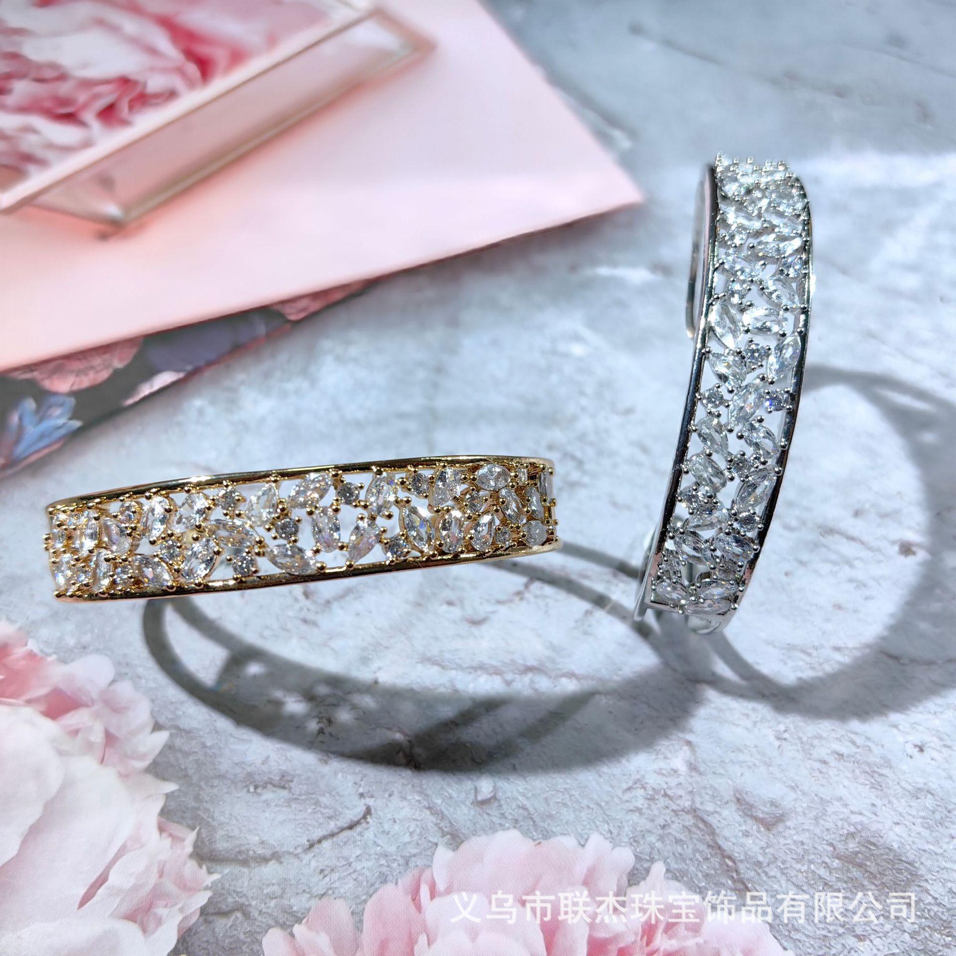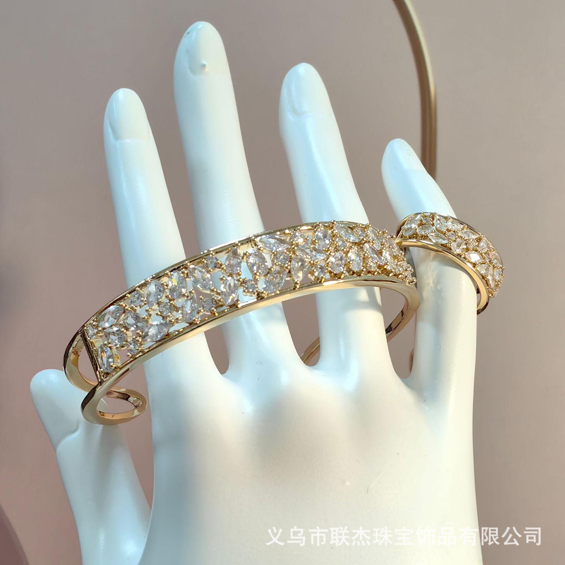 Pulsera Multicomponente Abierta Creativa Exquisita de Lujo Ligero Chapada en Oro Real de 18K Transfronteriza Moda Oro Rosa Geométrico