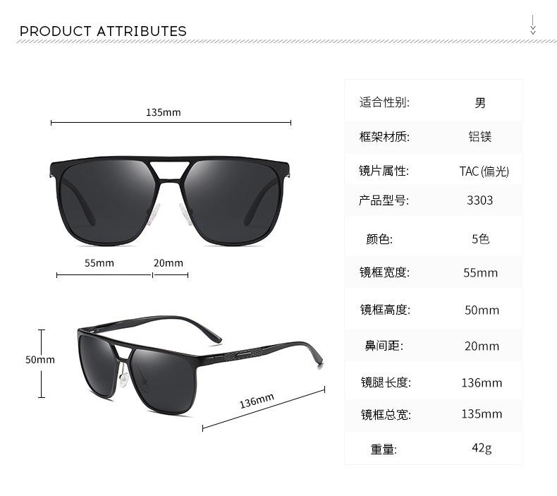 Gafas de sol polarizadas de moda 2020, 3348, de metal, bicolor, con montura grande, para hombre, clásicas, negras.