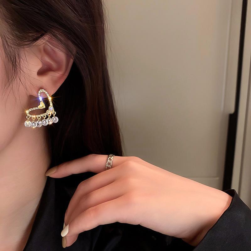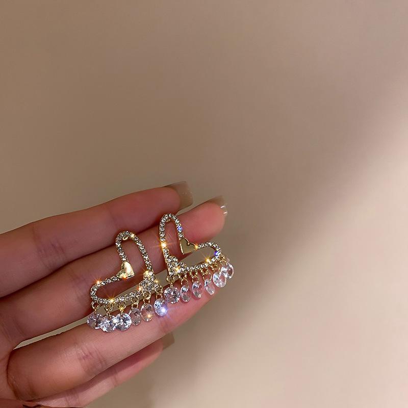 Pendientes de borlas de diamantes con estilo, sencillos, con personalidad y temperamento a la moda, ligeros, de lujo, combinables, con un estilo frío y un diseño especial.