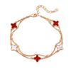S925 sterling silver double-layer four-leaf clover bracelet-rose-red