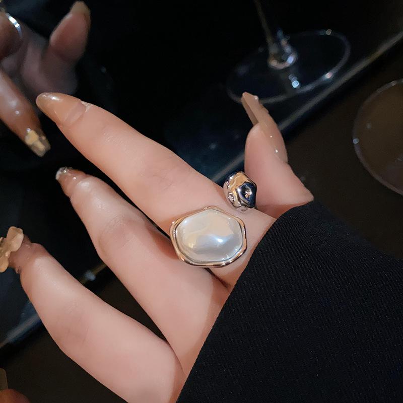 Anillo abierto geométrico de circonita de estilo moderno 2024, anillo de dedo índice de moda simple, temperamento ligero, lujo, versátil, joyería de mano al por mayor para mujeres