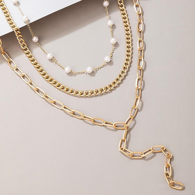 Collar multicapa con borlas y cadena de aleación con personalidad de perlas de imitación de moda transfronteriza europea y americana para mujer