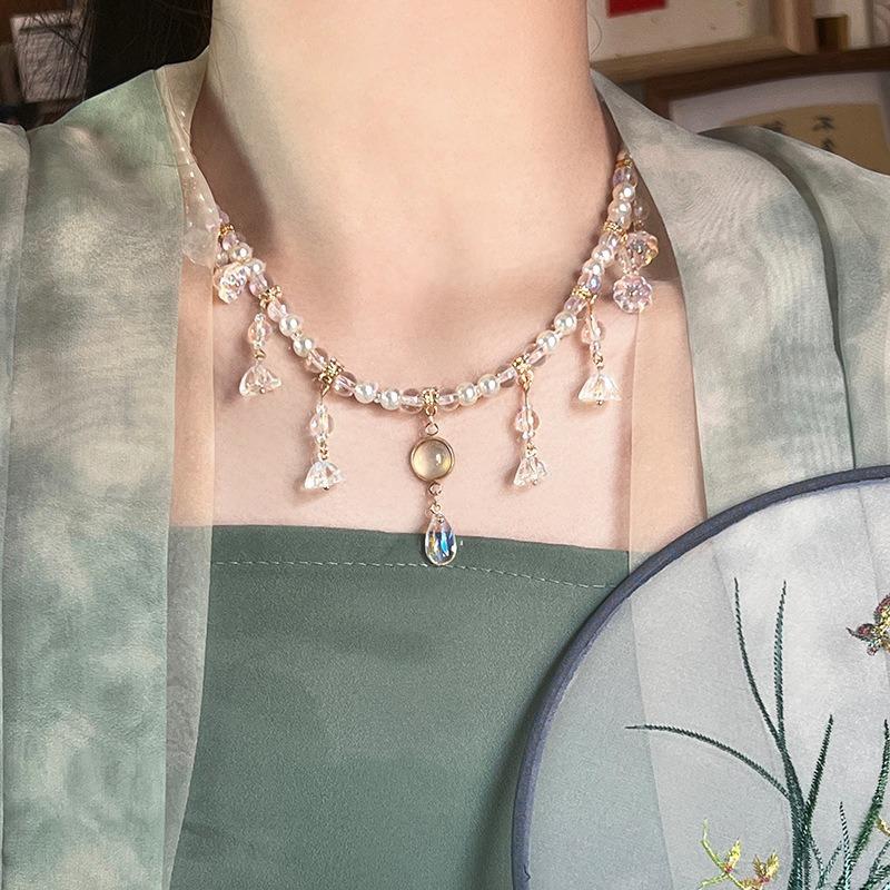 Collar de loto con perlas antiguas, nuevo estilo Ming, para mujer, coronas, accesorios de ropa Lo Han, colgante de loto, 2024