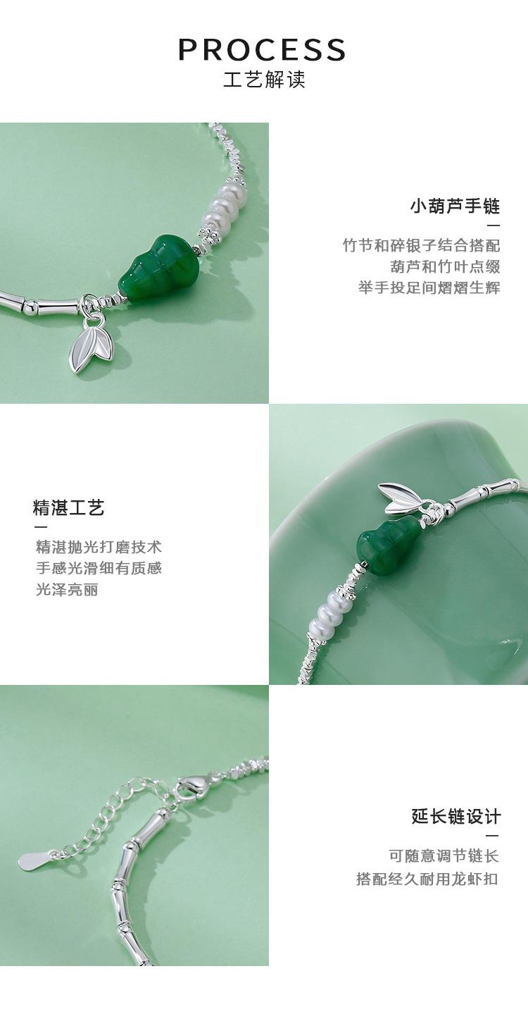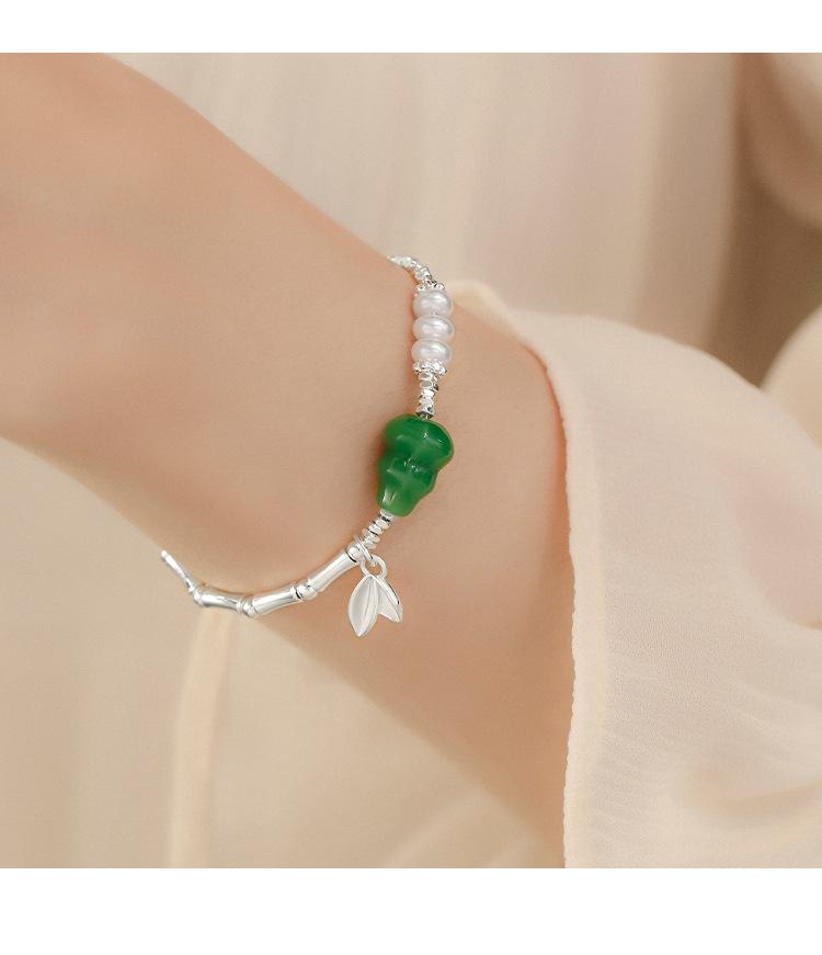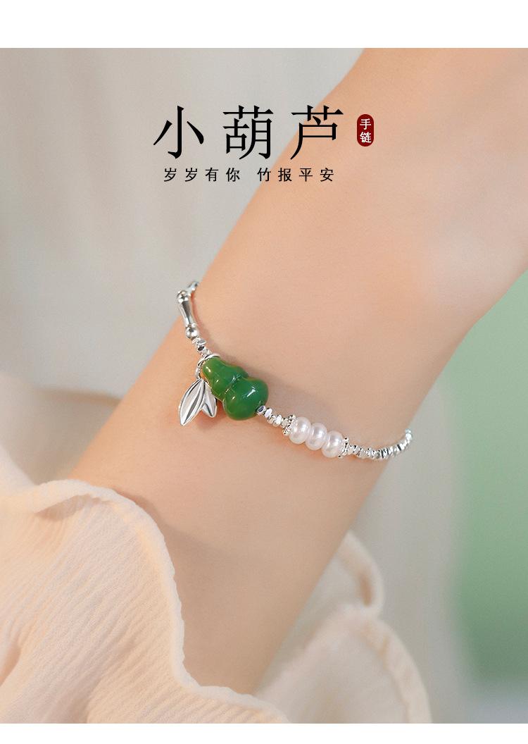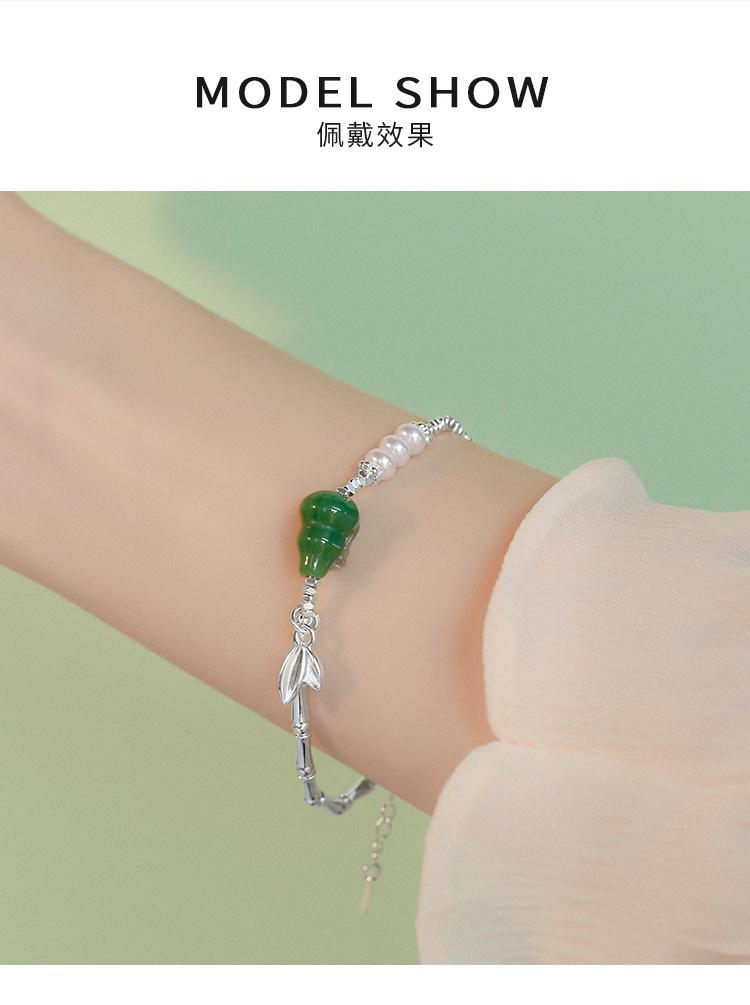 Compra Pulsera de calabaza de jade, nuevo estilo chino, estilo nacional, nicho de perla de bambú, pulsera de plata rota, lujo ligero, 2024, nuevo, explosivo al por mayor en Joom.pro
