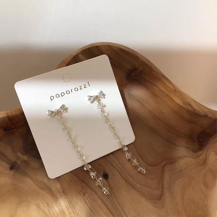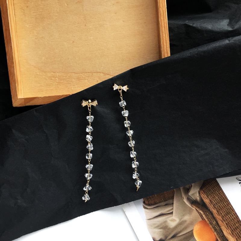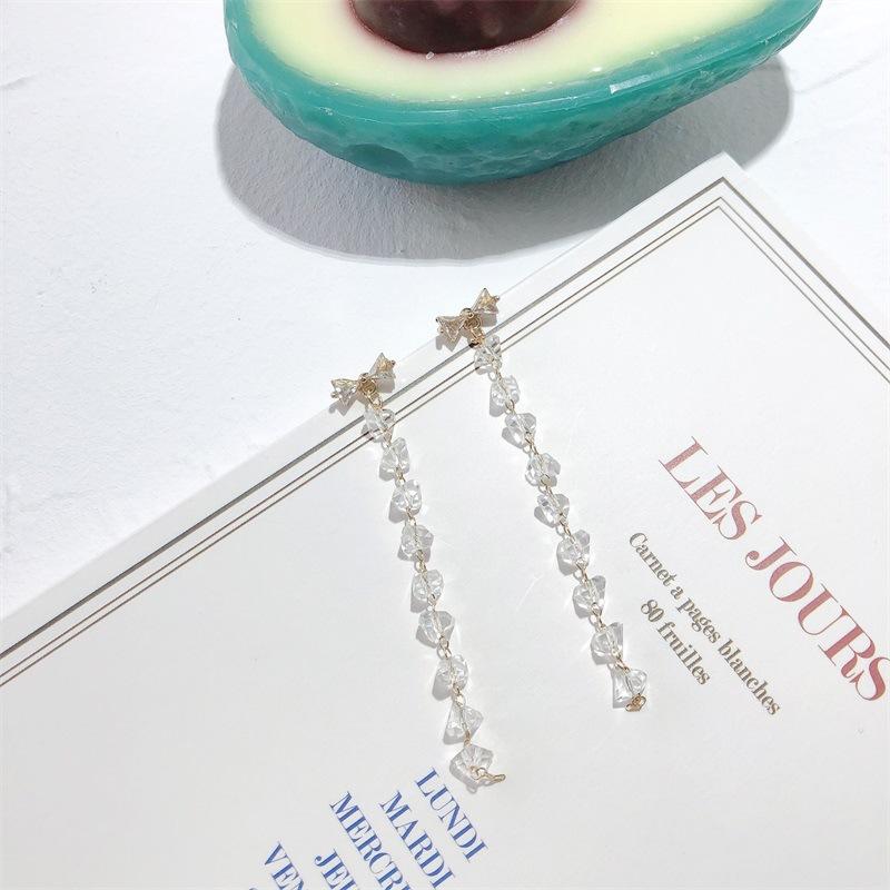 Aretes Coreanos Encantadores de Moño de Zirconia Fresca para Mujer Nuevo Estilo Nicho Estéreo Triángulo Cristal Aretes de Borla Modernos