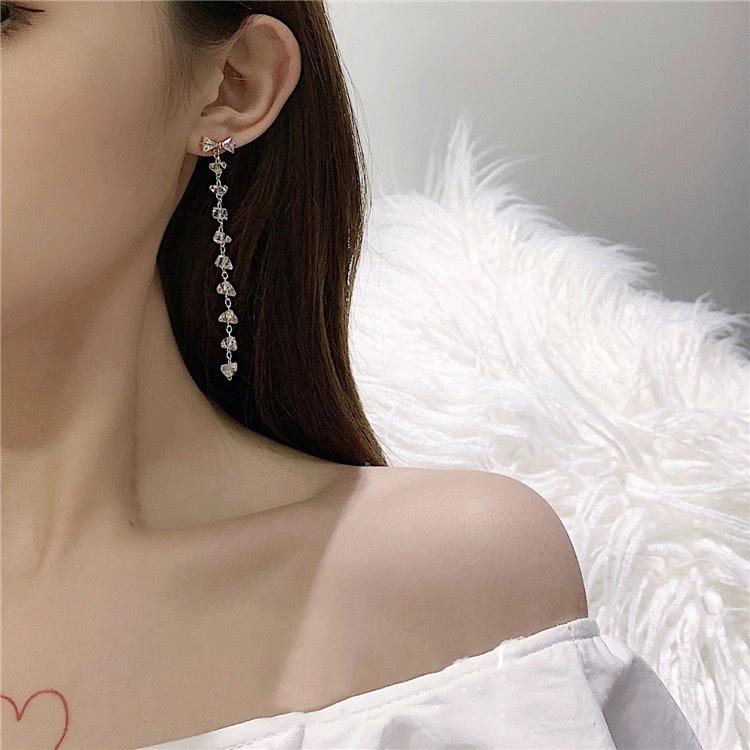 Pendientes de plata 925 con forma de lazo y temperamento, con borlas largas de diamantes y personalidad, ideales para combinar con todo tipo de prendas de vestir.