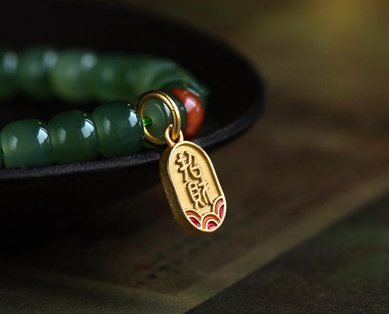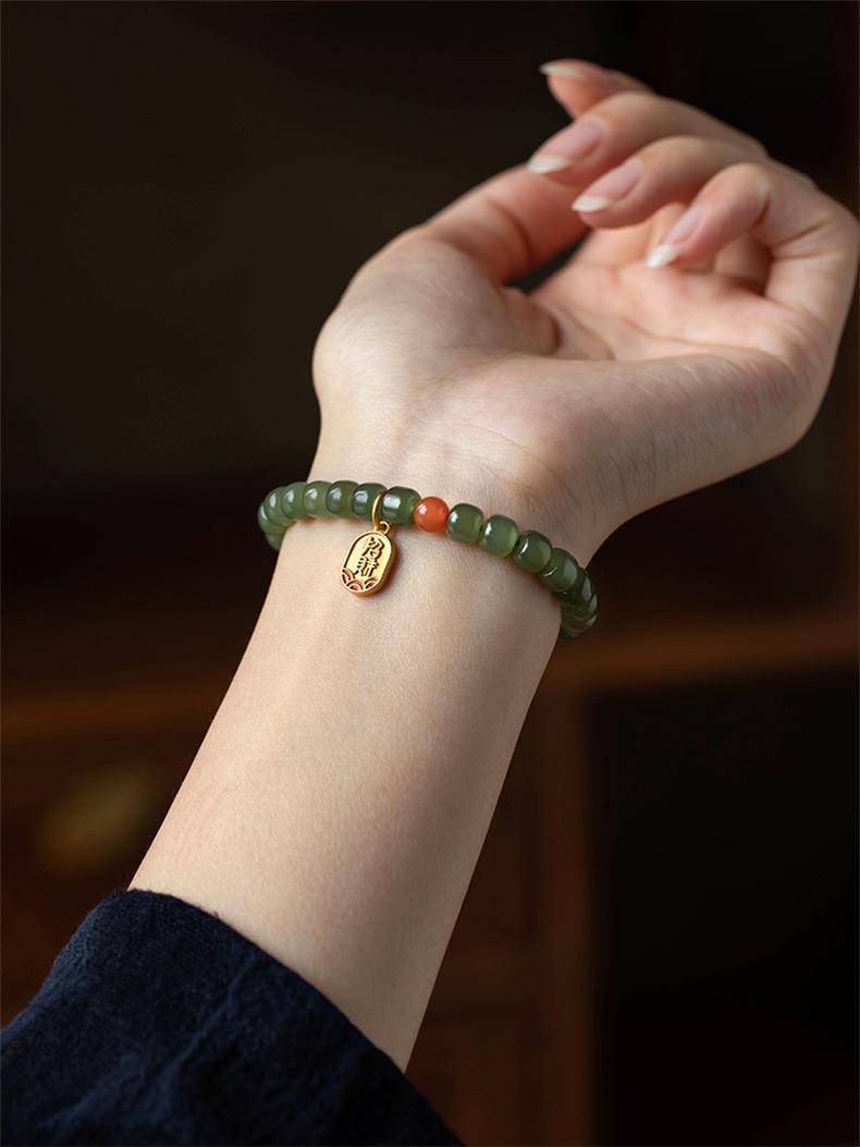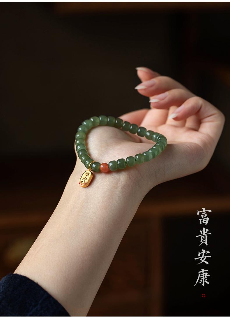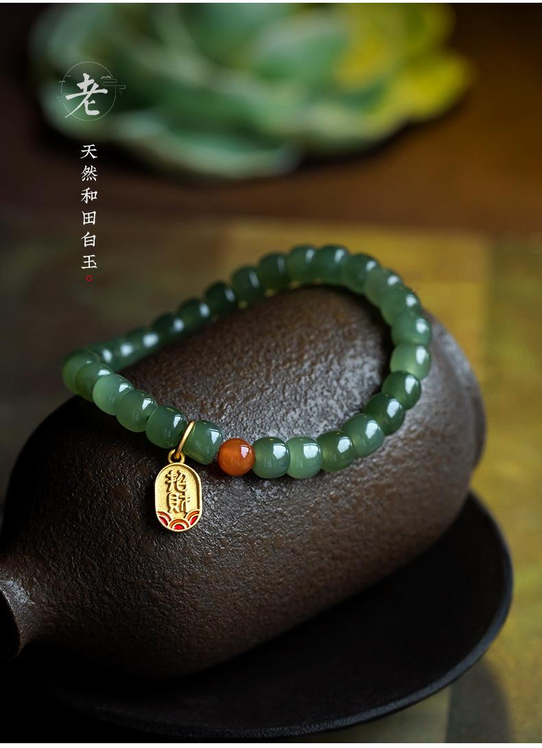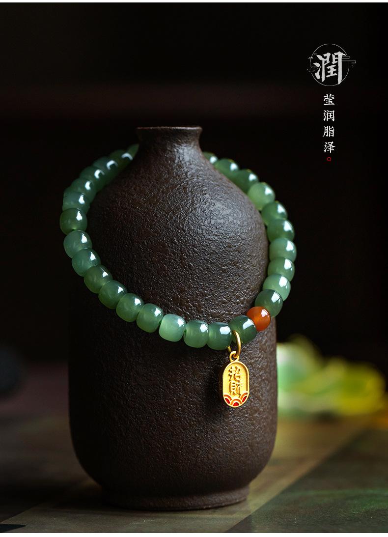 Pulsera de jade Hetian para mujer, cuentas de Buda, jade Hetian, pulsera de agua soleada, mano, joyería de moda simple al por mayor
