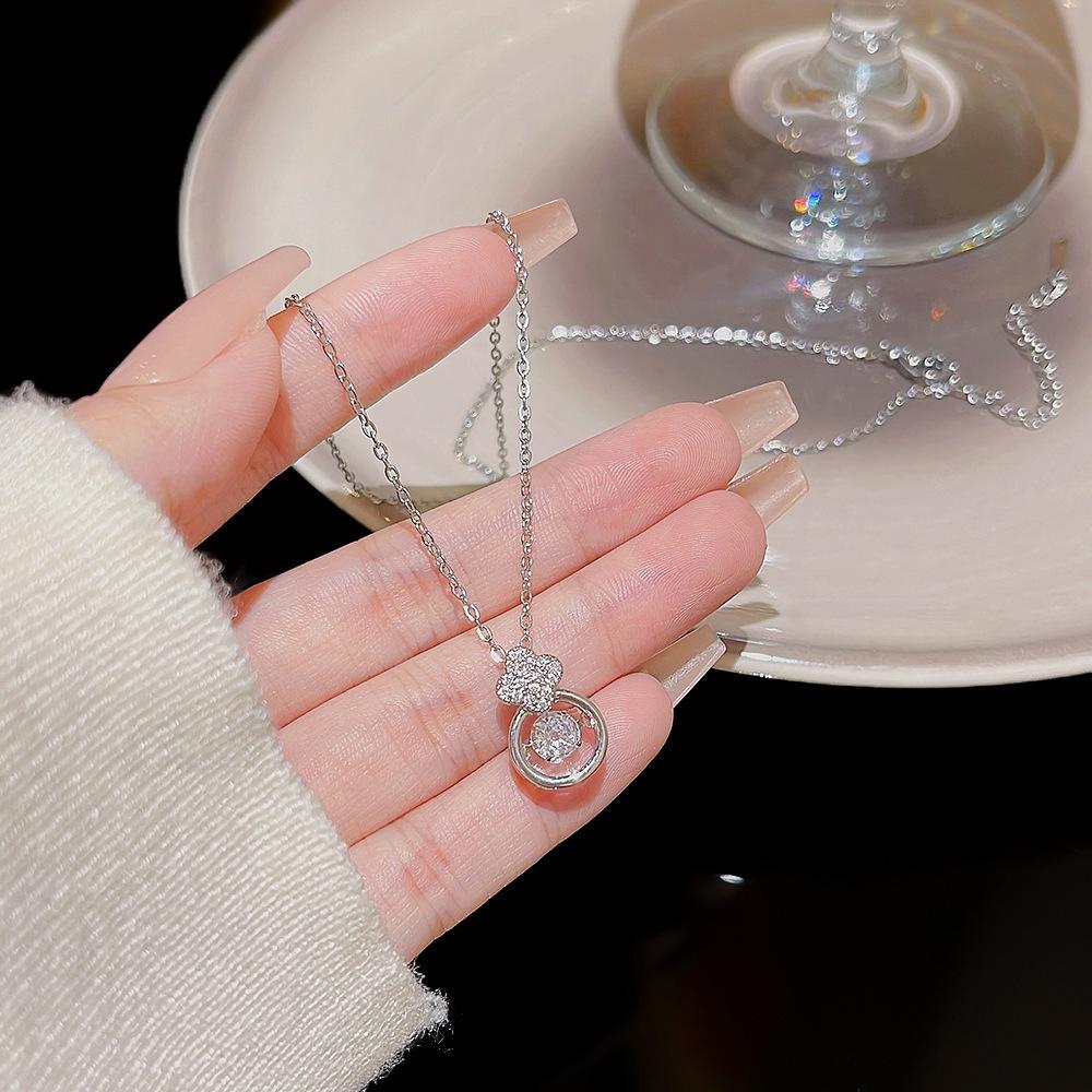 Collar de acero de titanio con incrustaciones de circonitas para mujer, cadena de clavícula geométrica, colgante flexible, regalo de Navidad, accesorios nuevos al por mayor