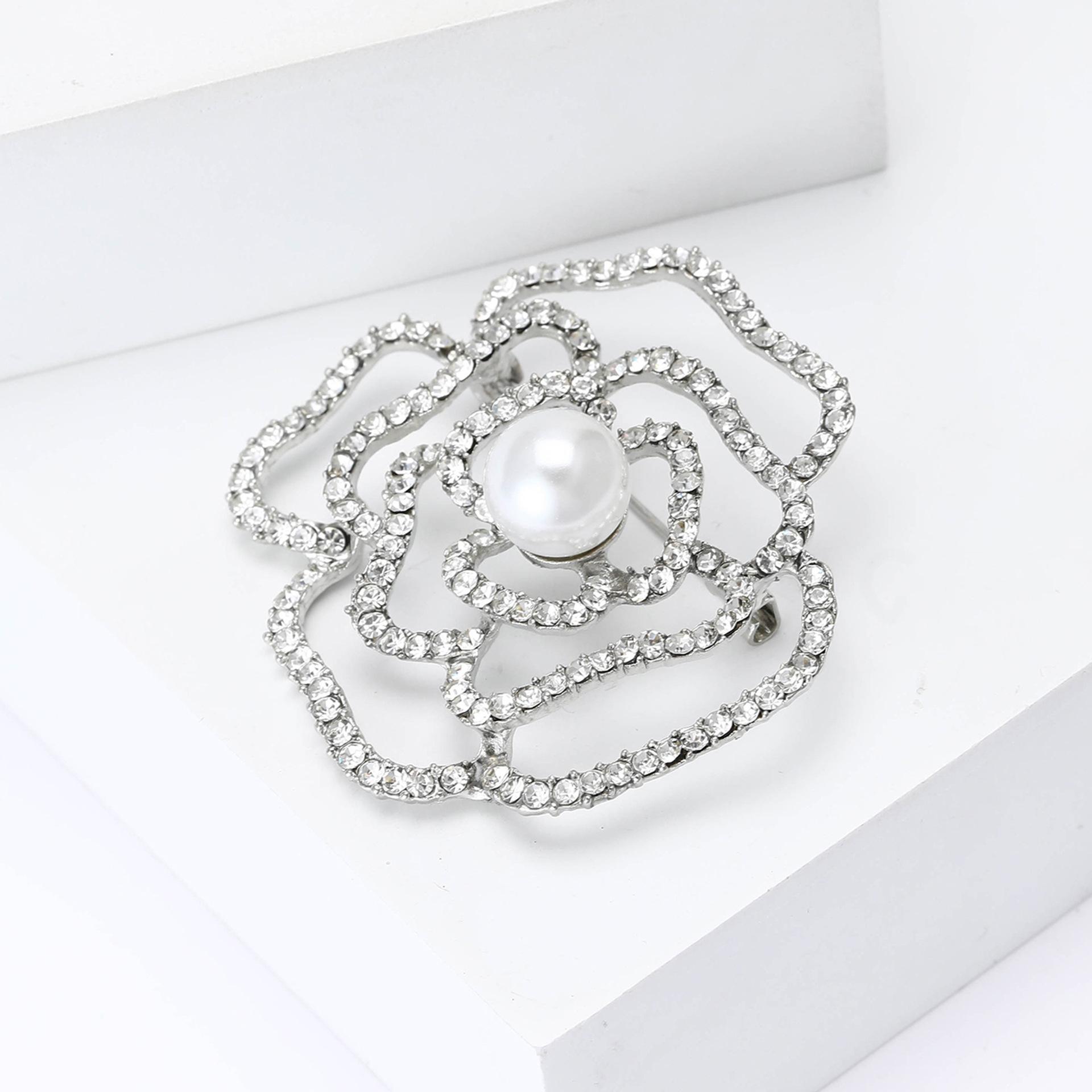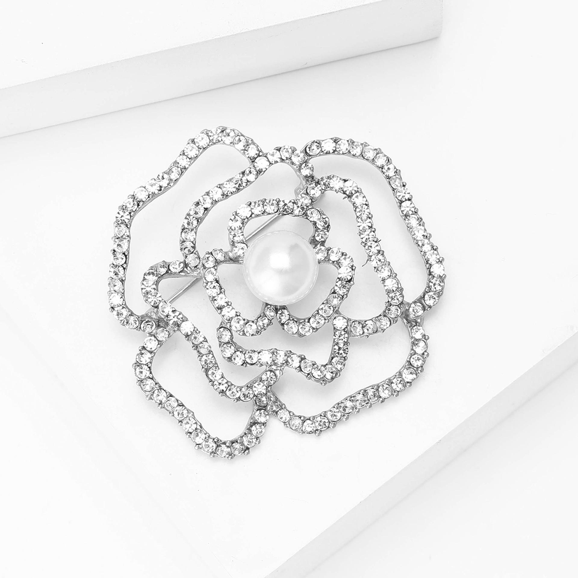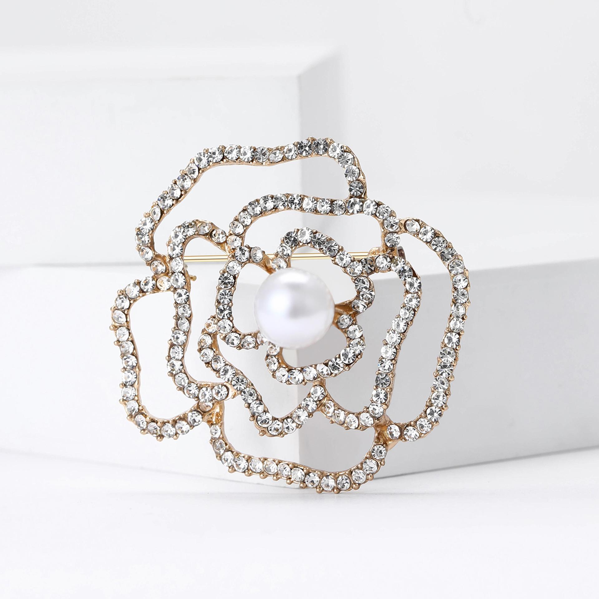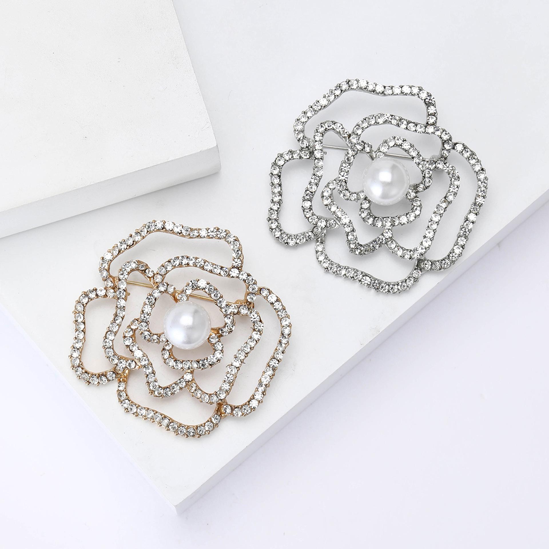 Broche de camelia con diamantes de imitación de aleación exquisita de alta calidad de estilo europeo y americano, alfileres de joyería de ramillete para ropa de mujer de temperamento clásico
