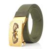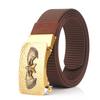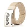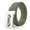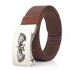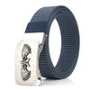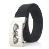 Cinturón de lona de nailon con hebilla automática sin dientes para hombre, estilo informal juvenil, con cabeza de águila doble y personalidad joven.