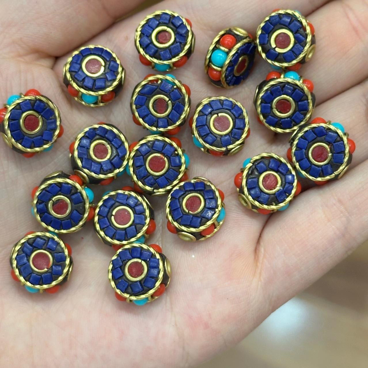 Cuentas de Nepal Calcomanía Estilo Tibetano Cuentas Retro Barón Impresas Diy Hechas a Mano Colgante de Cuerda Pulsera Accesorios de Joyería