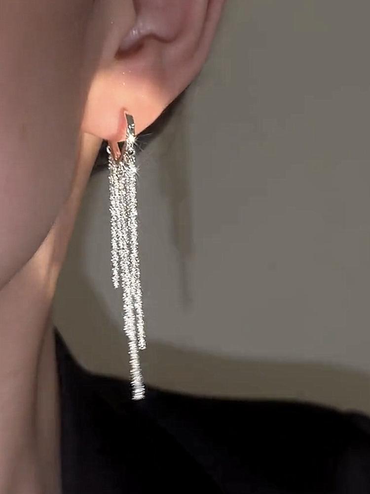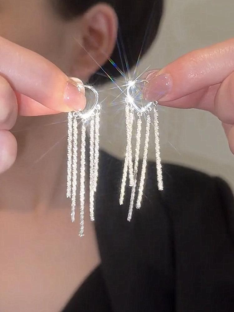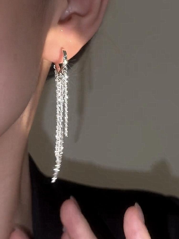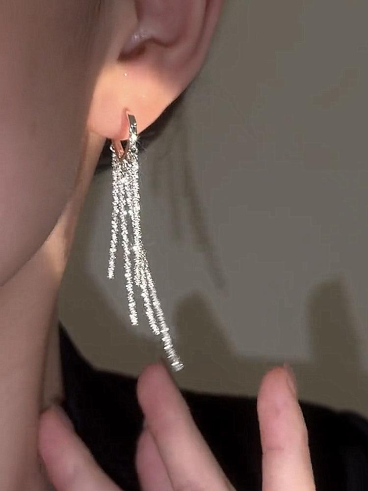Pendientes de borla brillante, hebilla de oreja de gipsófila plateada, temperamento largo de alta gama, hebilla de oreja de amor largo, pendientes de temperamento exagerado