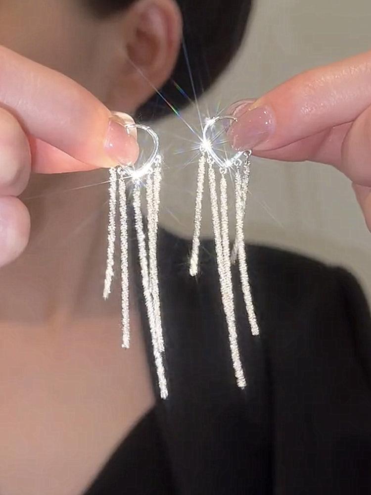 Compra Pendientes de borla brillante, hebilla de oreja de gipsófila plateada, temperamento largo de alta gama, hebilla de oreja de amor largo, pendientes de temperamento exagerado al por mayor en Joom.pro