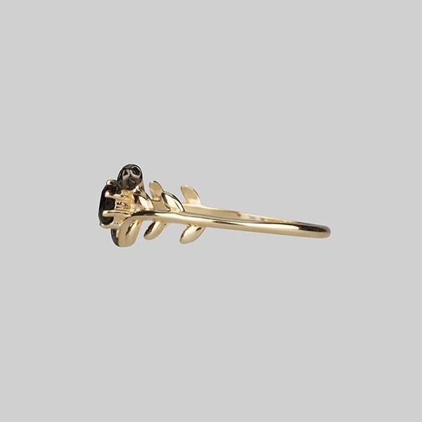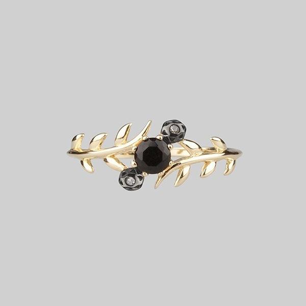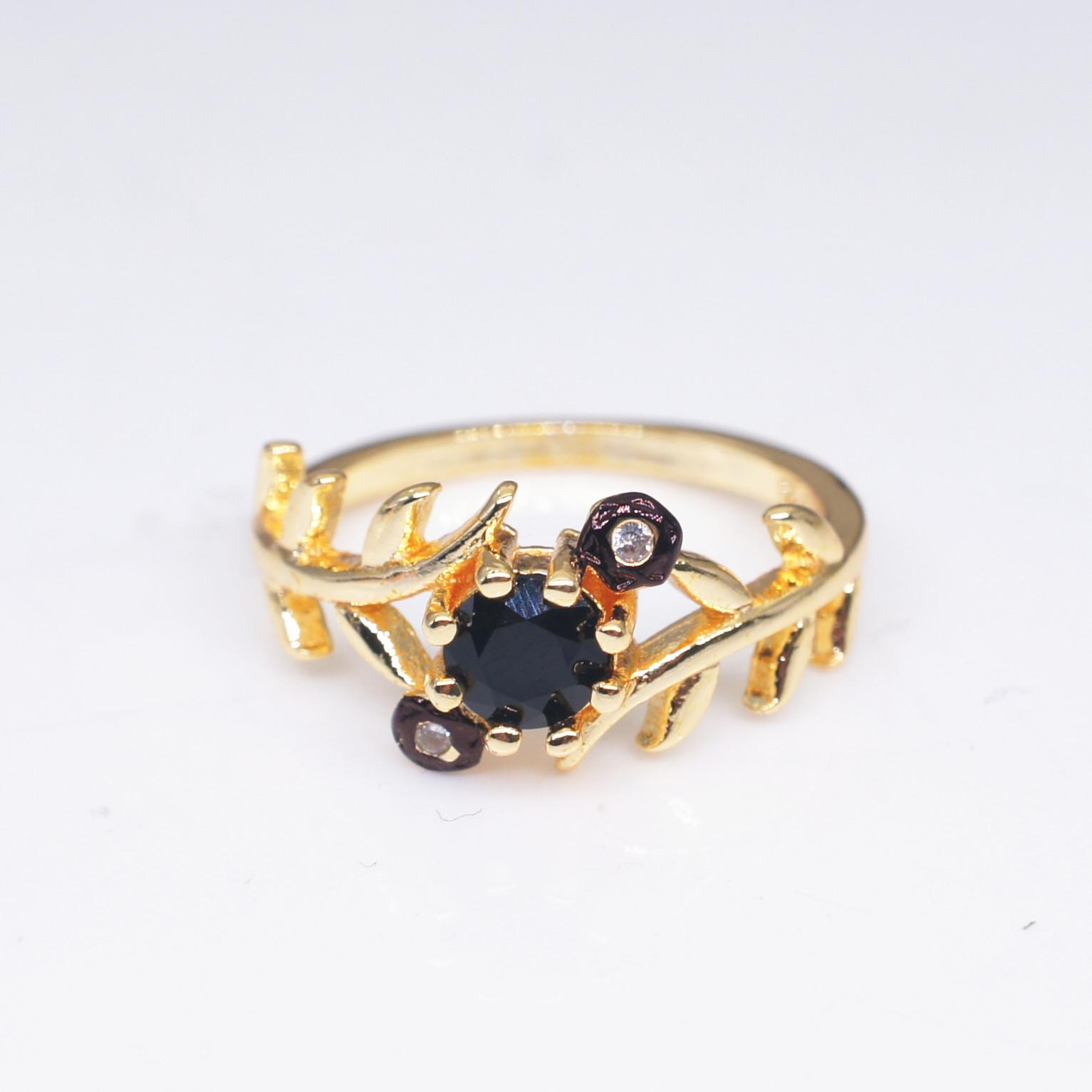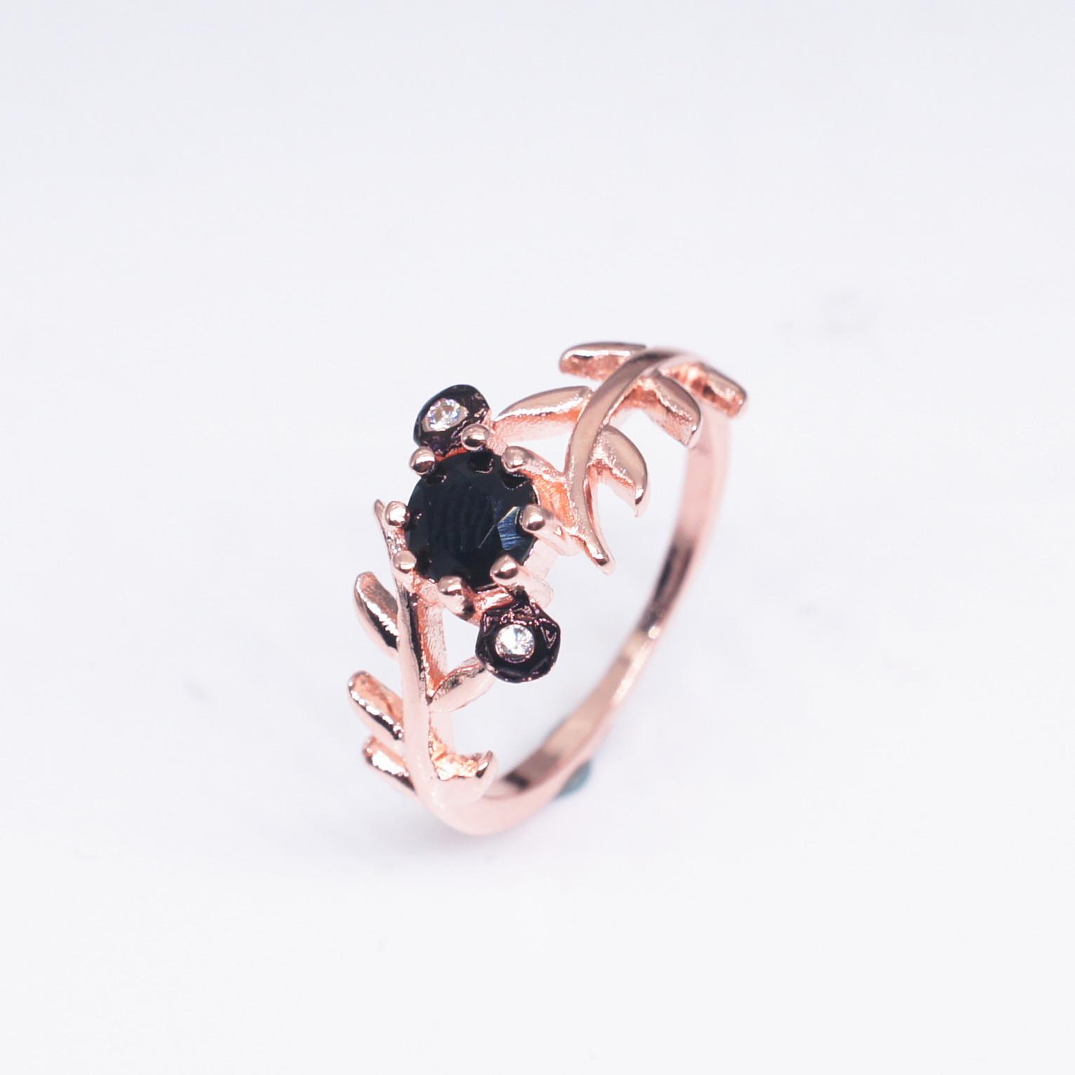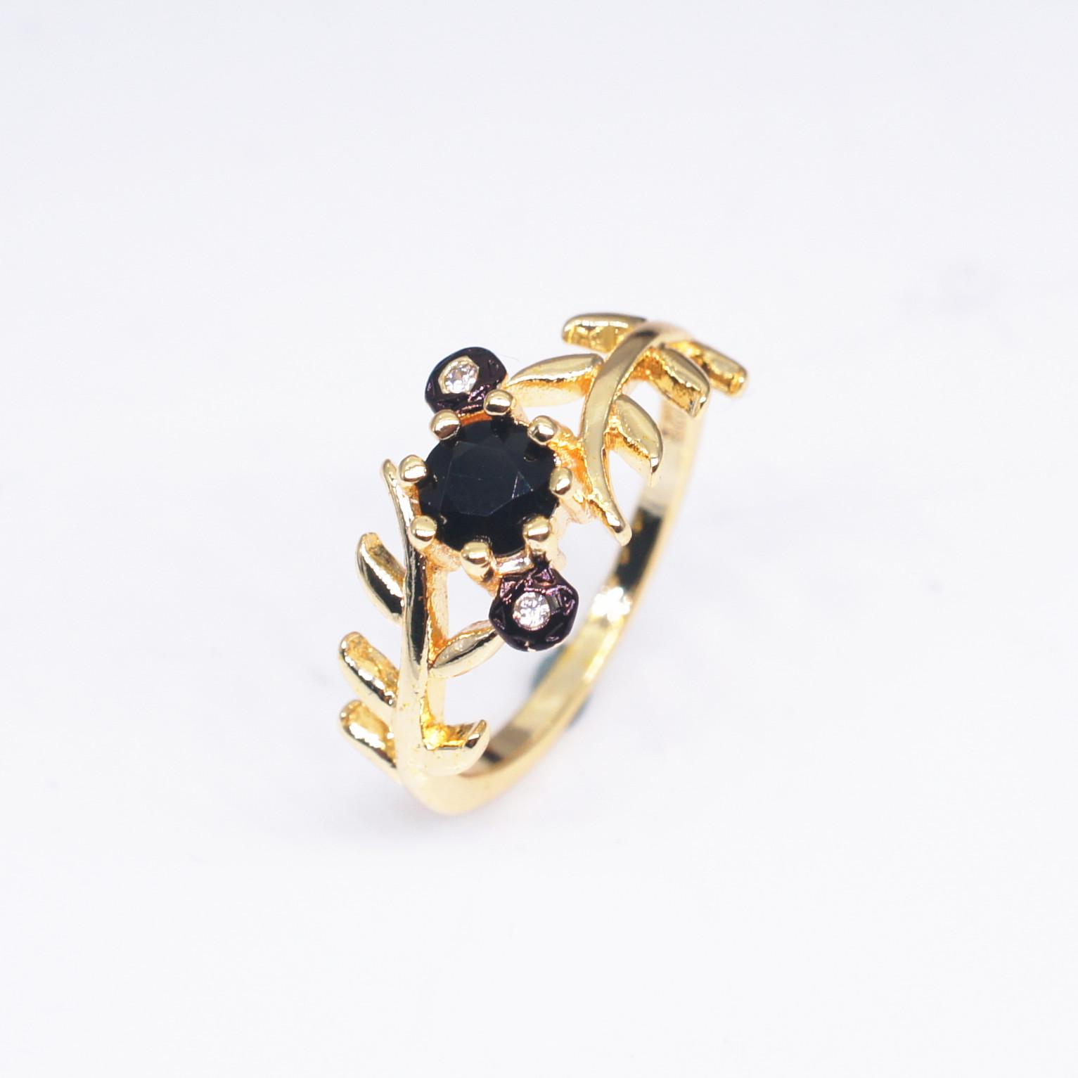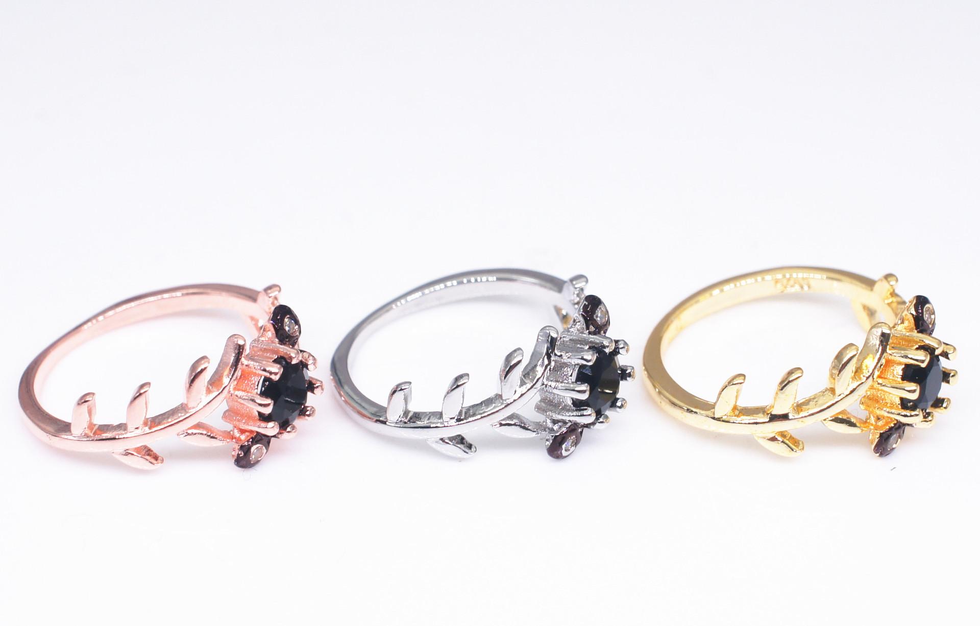 Zhen Rong desea el mejor vendido nuevo anillo de hoja de árbol con separación de color en oro negro, anillo de compromiso chapado en oro de 18 quilates para mujer, estilo europeo y americano.