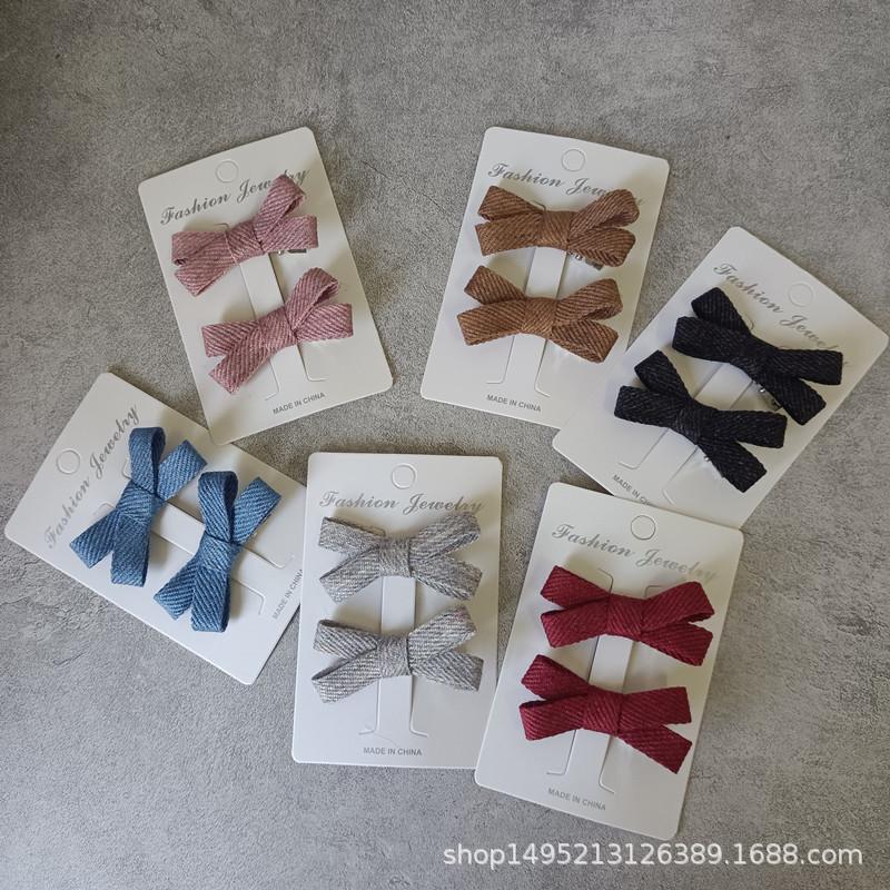 Nuevos accesorios para el cabello para niños, de otoño e invierno, de tela sencilla, estilo retro, con lazo pequeño, pinza lateral, flequillo, tocado con flores