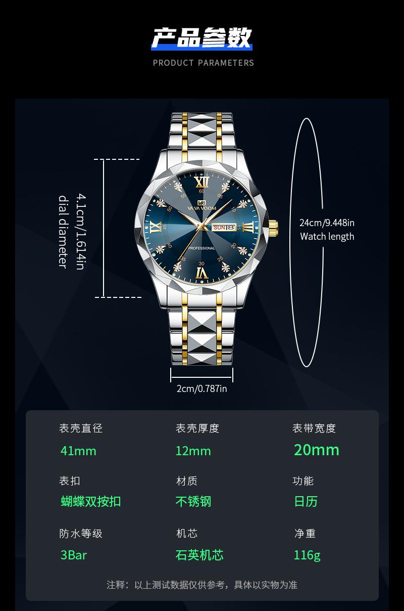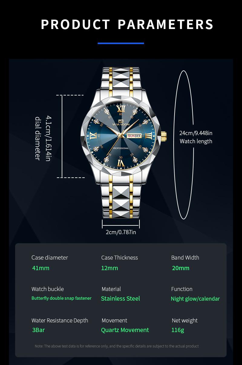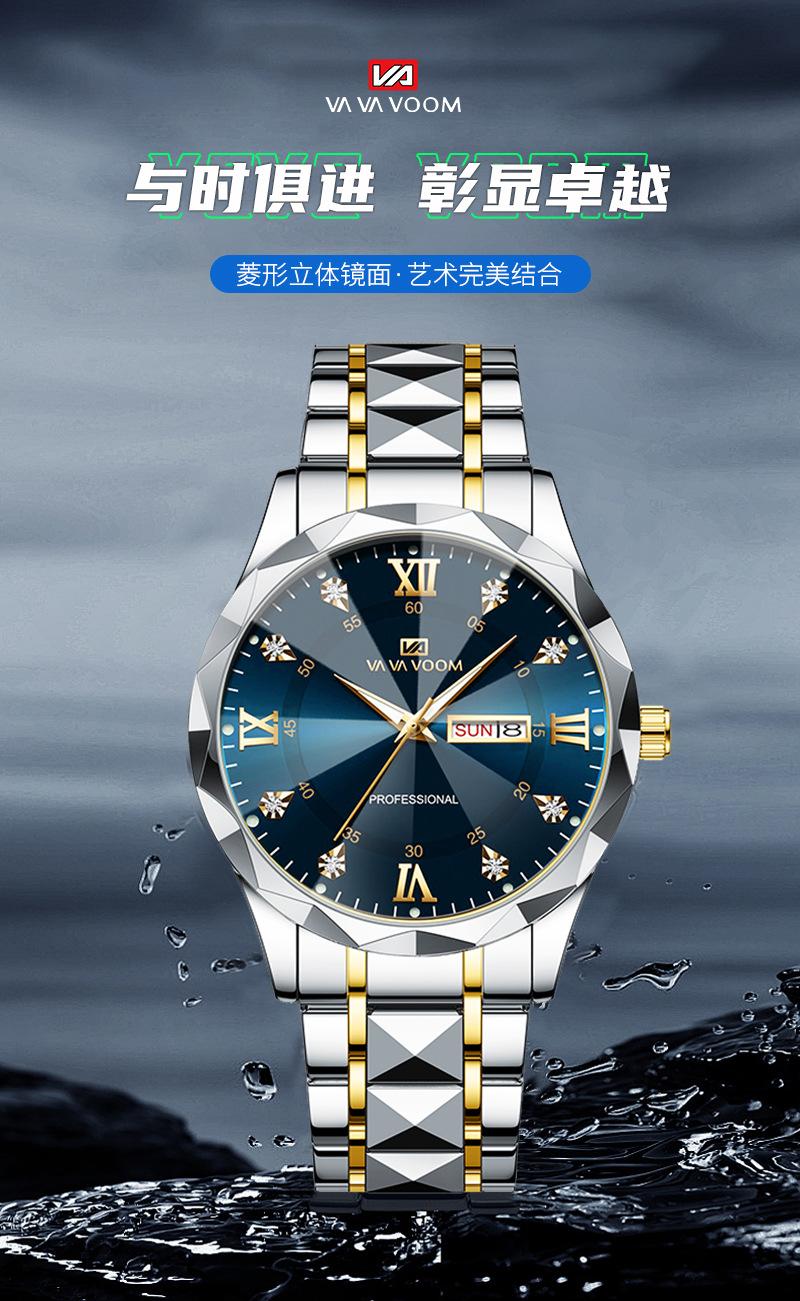 Reloj de la marca Vavavoom para hombre, resistente al agua, de moda, diseño de rombo, para negocios, transfronterizo, para hombre, venta al por mayor de fábrica