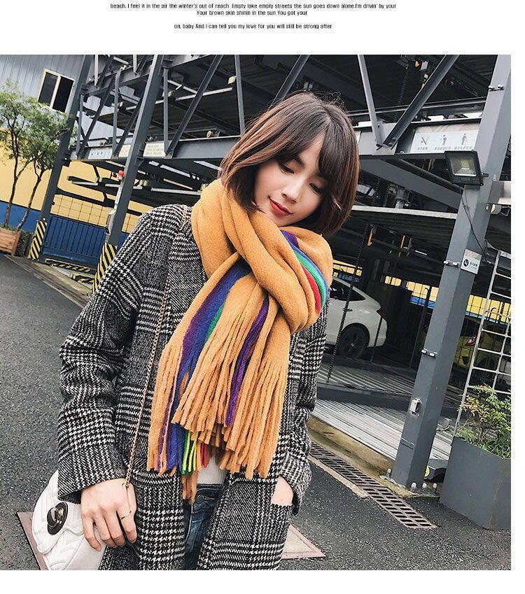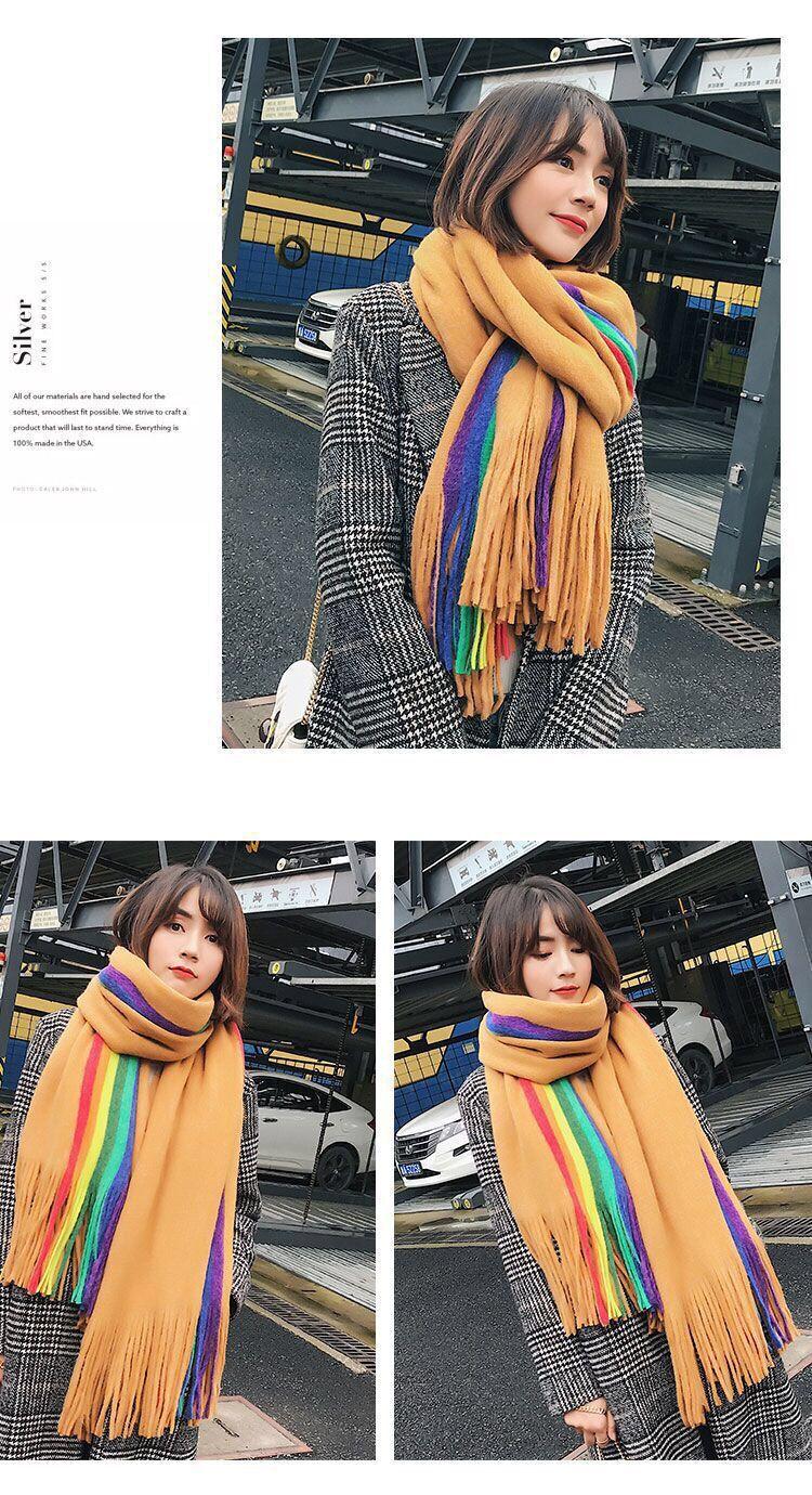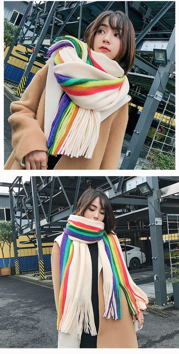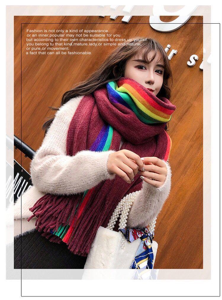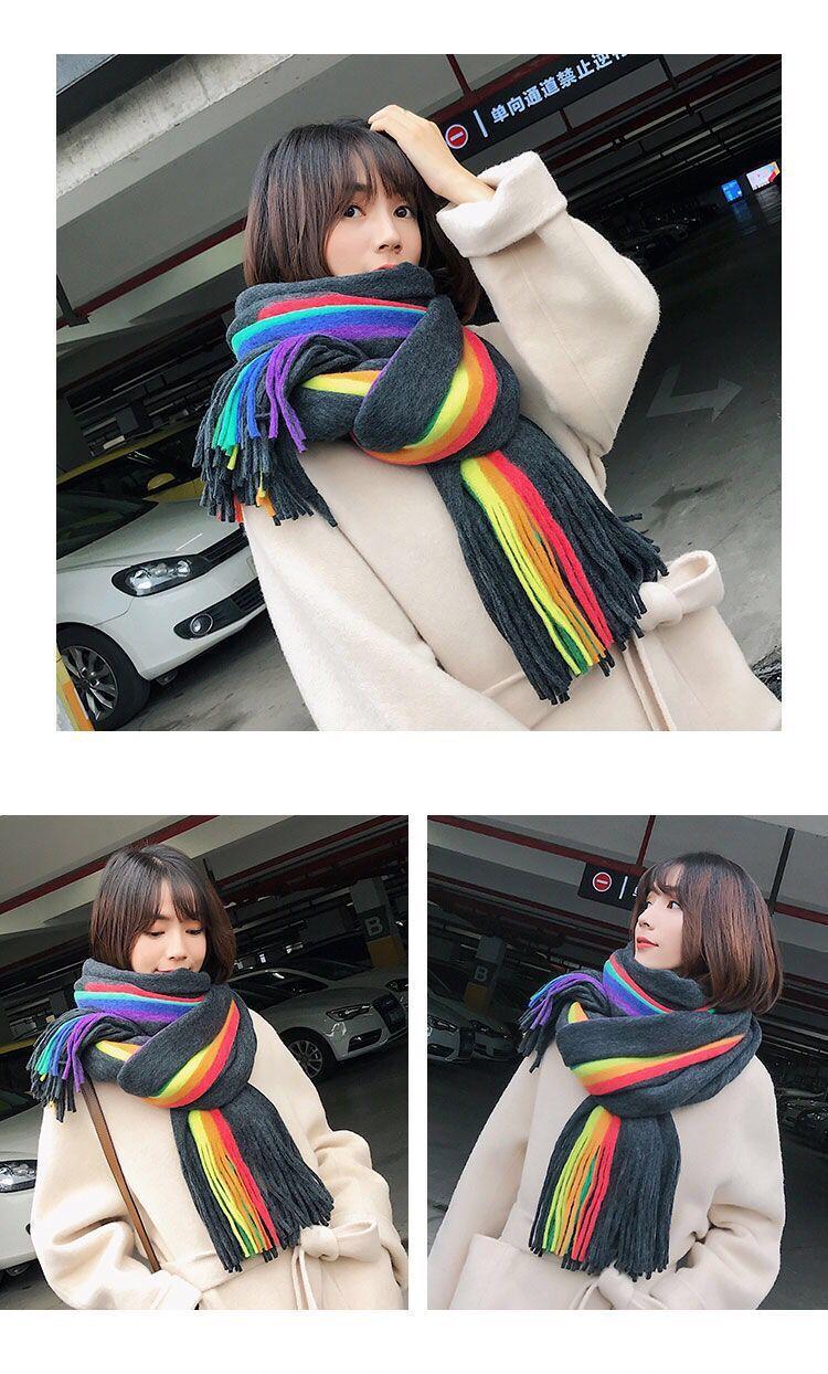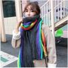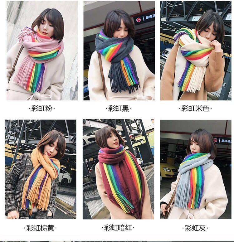 Bufanda arcoíris para mujer otoño e invierno chal de aire acondicionado de doble uso tipo cachemira bufanda larga de lana tejida gruesa moda coreana