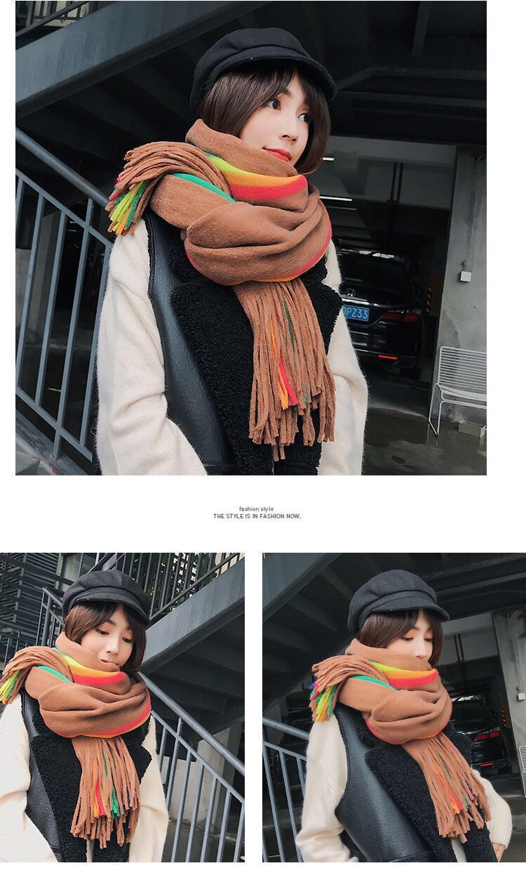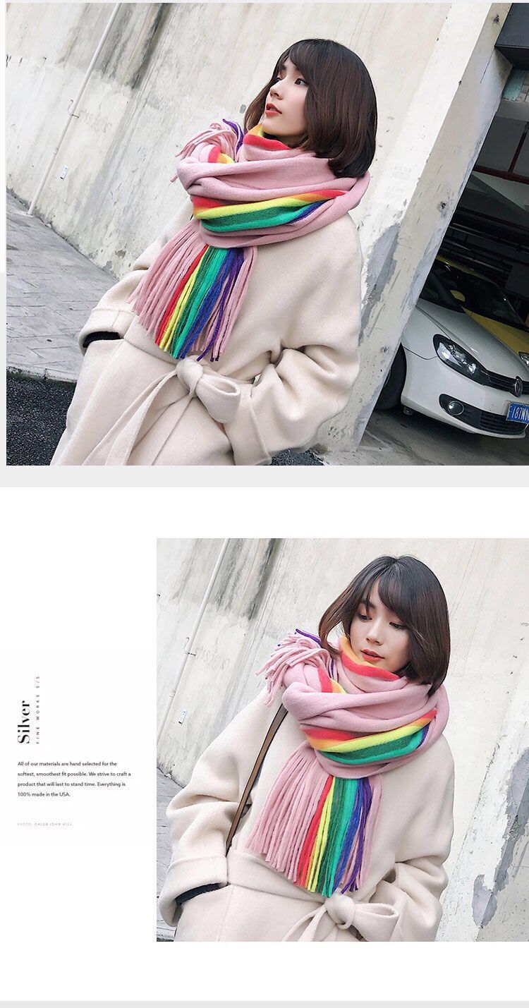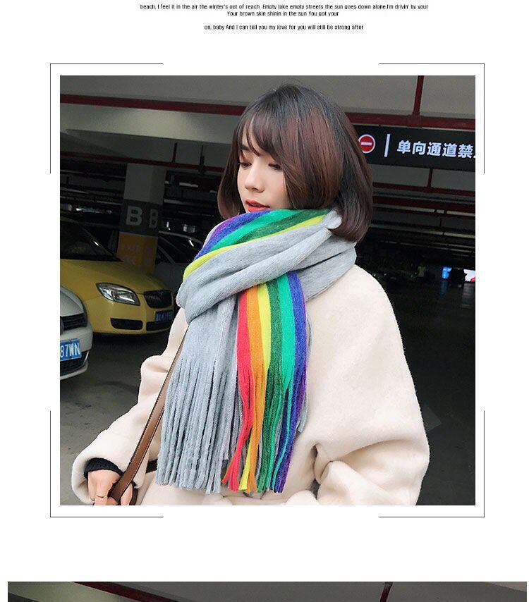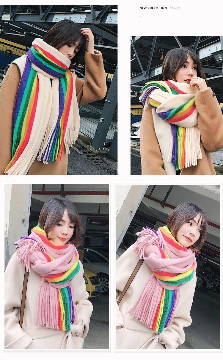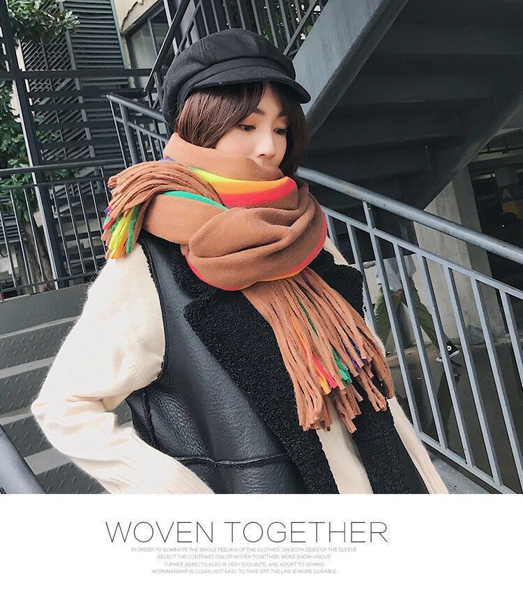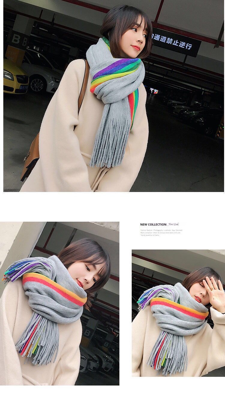 Bufanda arcoíris para mujer otoño e invierno chal de aire acondicionado de doble uso tipo cachemira bufanda larga de lana tejida gruesa moda coreana