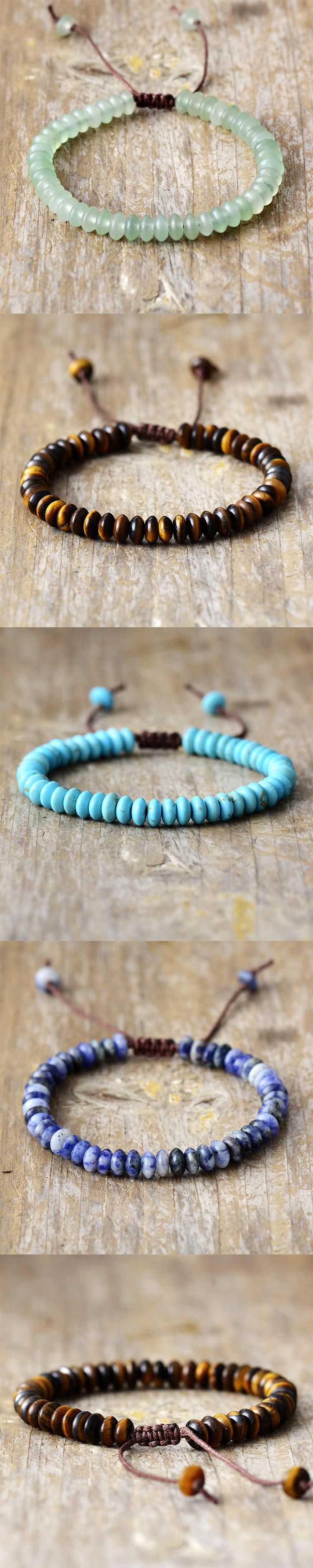 Nuevas pulseras de cuentas hechas a mano de piedra natural transfronteriza para hombres y mujeres, pulseras ajustables de turquesa, joyería de pareja de moda europea y americana